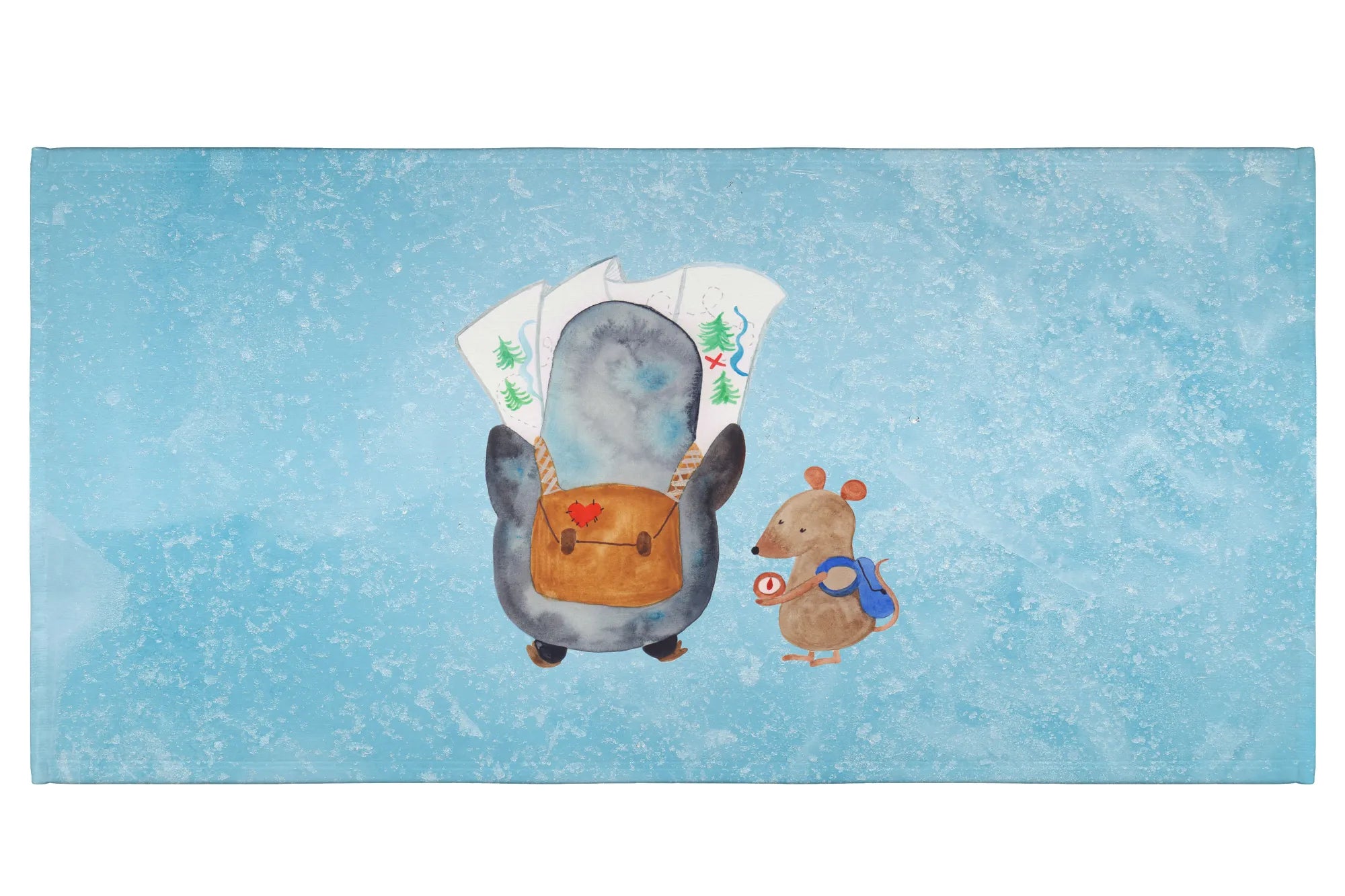 Das Handtuch ist hochwertig bedruckt mit strahlenden Farben, die beim Baden oder nach einem Ausflug sofort gute Laune verbreiten. Der süße Pinguin schaut neugierig auf die Landkarte, während die schlaue Maus den Kompass prüft – gemeinsam sind sie bereit für ein großartiges Abenteuer!