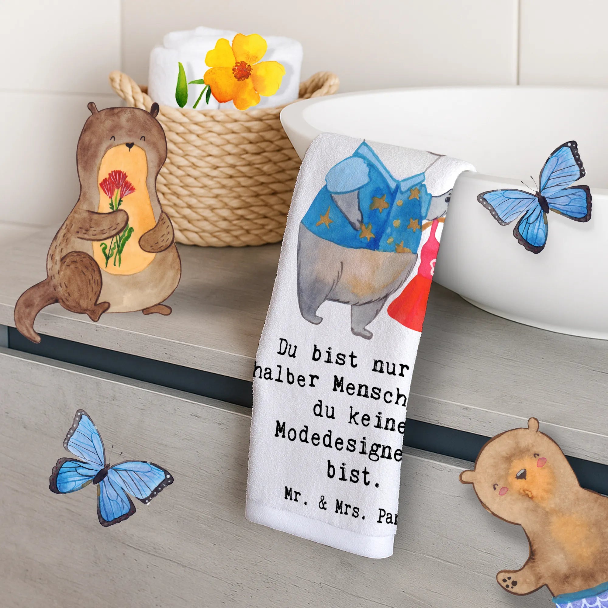 Das Gästetuch "Modedesignerin mit Herz" von Mr. & Mrs. Panda ist das perfekte Geschenk für alle kreativen Köpfe und Modeschöpferinnen! Mit einem traumhaften Design und dem witzigen Spruch "Du bist nur ein halber Mensch, wenn du keine Modedesignerin bist" wird dieses Handtuch zum echten Hingucker in jedem Badezimmer.