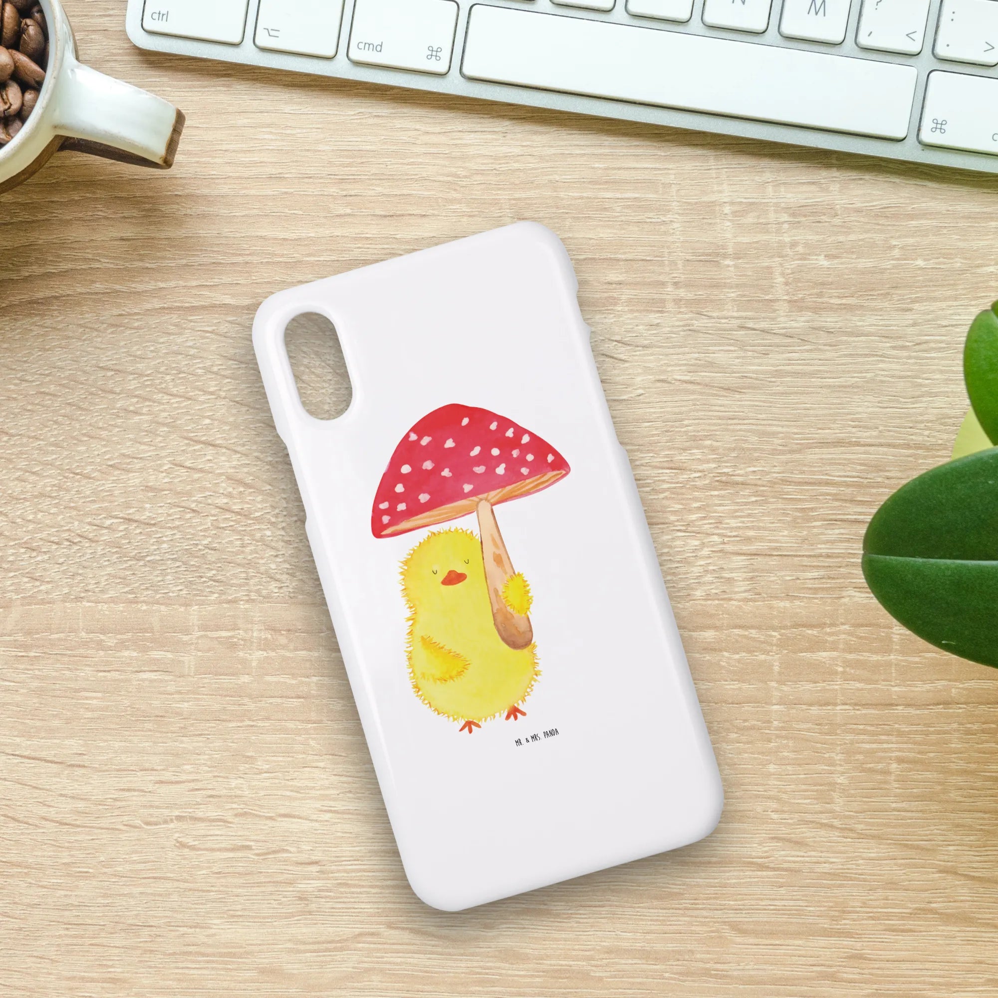 Jedes detailverliebte Design wurde handgezeichnet und zaubert sofort ein Lächeln auf dein Gesicht. Das niedliche Küken hält stolz einen roten Fliegenpilz, den man sich fast als kleinen Regenschirm vorstellen kann. Diese ausgefallene Gestaltung macht die Handyhülle zu einem wahren Eyecatcher.
