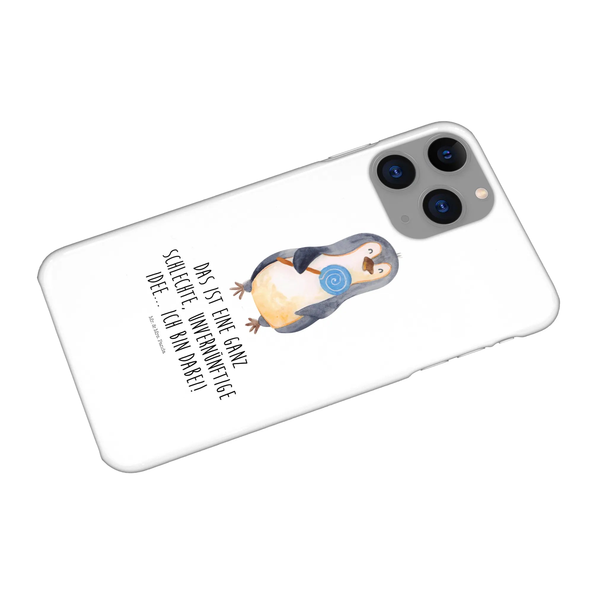 Verschenke Freude und Lächeln mit der iPhone 11 Handyhülle Pinguin Lolli aus der Pinguin-Kollektion von Mr. & Mrs. Panda – denn das ist eine ganz schlechte, unvernünftige Idee... Ich bin dabei! Die Pinguin-Kollektion lässt keine Wünsche offen und bietet dir eine große Auswahl an Produkten, die dein Herz höher schlagen lassen. Erlebe die süßesten Momente mit dieser tollen Handyhülle und heb dich mit einem Lächeln von der Masse ab!