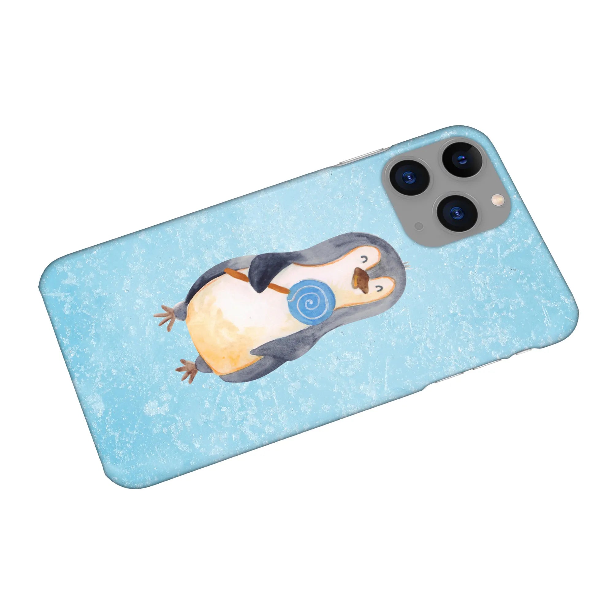 Liebst du Pinguine und kleine, freche Sprüche? Dann ist die iPhone 11 Pro Handyhülle „Pinguin Lolli" aus der Pinguin - Kollektion von Mr. & Mrs. Panda genau dein neuer Lieblingsbegleiter. Der entzückende Pinguin hält seinen bunten Lolli in der Hand und schaut dich mit großen, treuen Augen an. Das liebevoll handgezeichnete Aquarellmotiv wirkt besonders schön vor dem eisblauen Hintergrund und bringt sofort gute Laune in deinen Alltag.