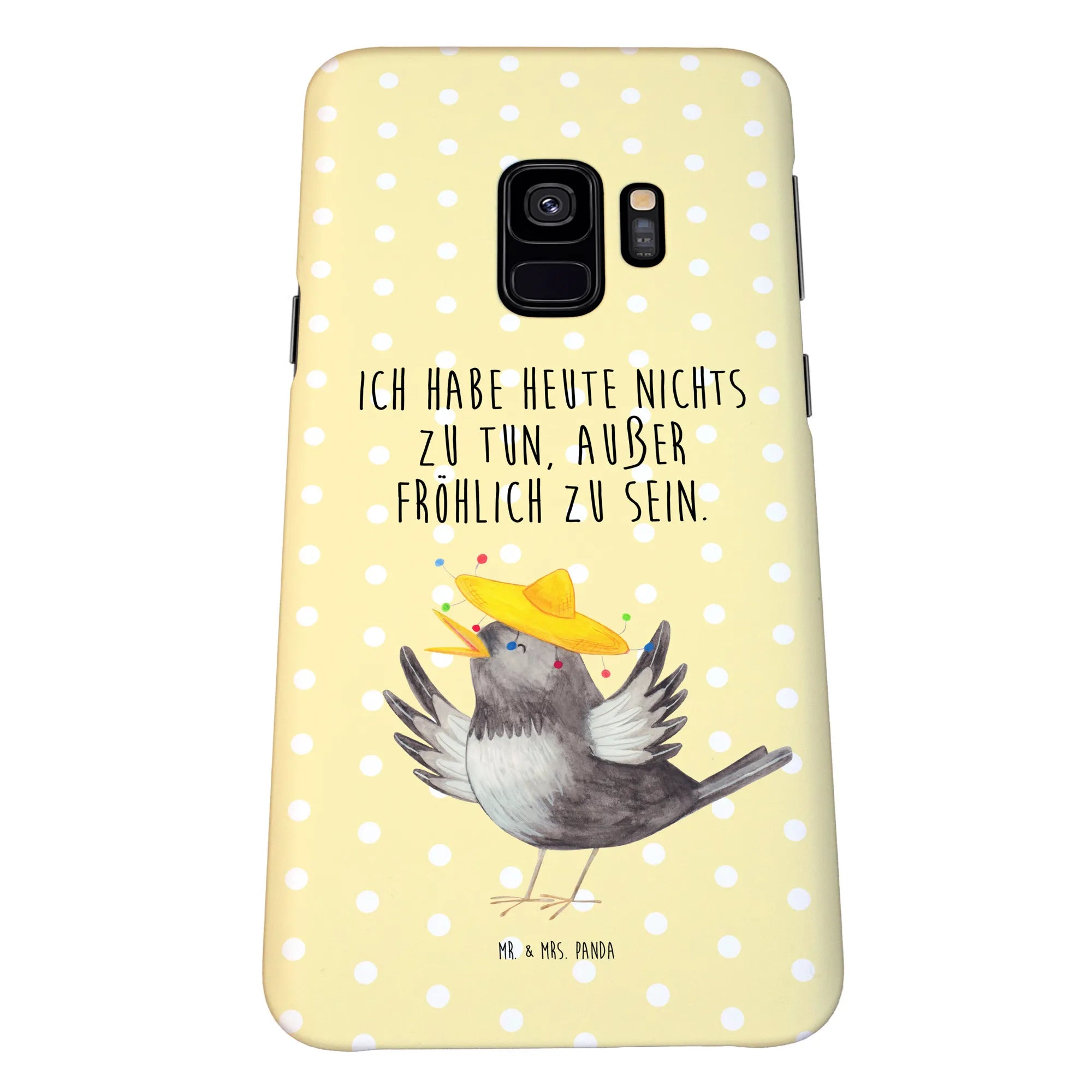 Die Samsung Galaxy S9 Handyhülle mit dem fröhlichen Raben im Sombrero ist das perfekte Geschenk für alle, die Glück und gute Laune schätzen. Dieses liebevoll gestaltete Motiv aus der Small World Kollektion von Mr. & Mrs. Panda bringt nicht nur Farbe in den Alltag, sondern schützt auch dein Smartphone vor Stößen, Kratzern und Schmutz.