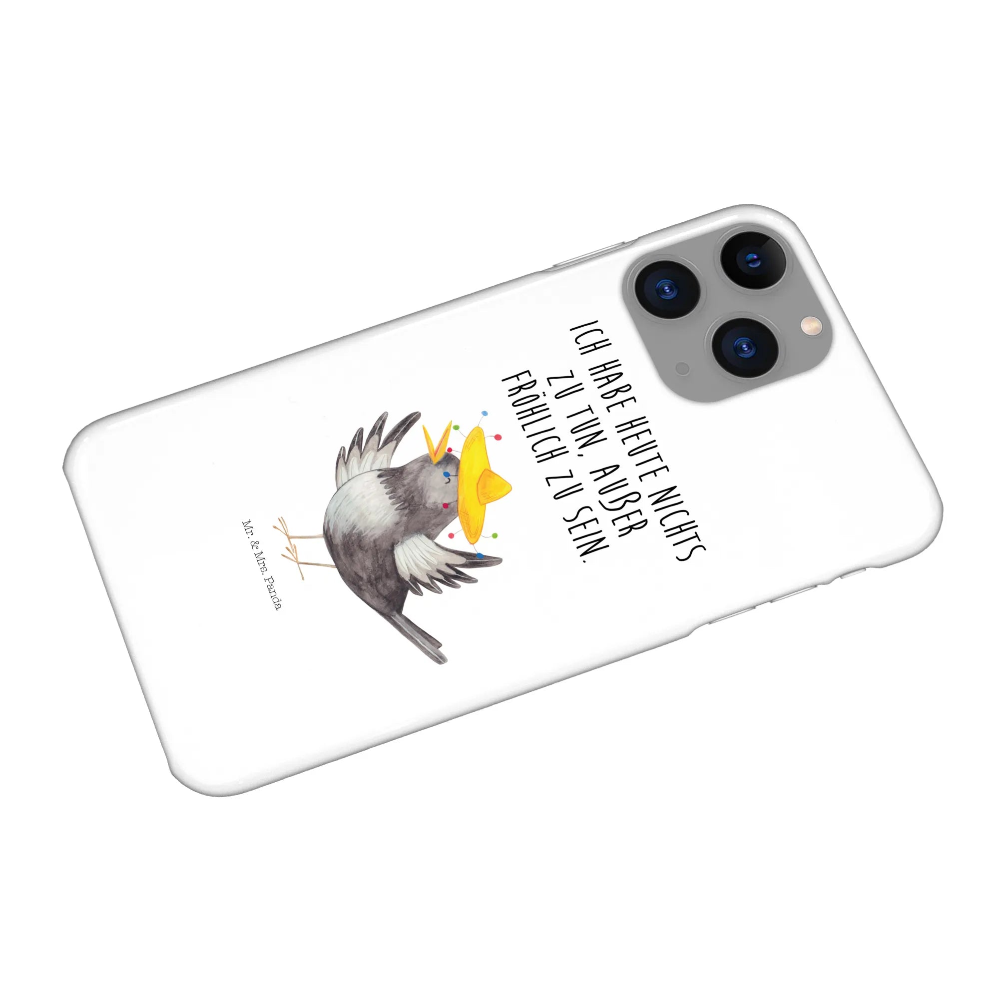 Suchst du das perfekte iPhone 11 Pro Case, das schützt und gleichzeitig gute Laune macht? Unsere Mr. & Mrs. Panda Handyhülle mit dem liebenswerten „Rabe mit Sombrero“ aus der Small World Kollektion vereint genau das: Charme, Humor und Alltagstauglichkeit. Der fröhliche Rabe mit seinem Sombrero tanzt dich durch den Tag, begleitet von dem positiven Spruch „Ich habe heute nichts zu tun, außer fröhlich zu sein.“