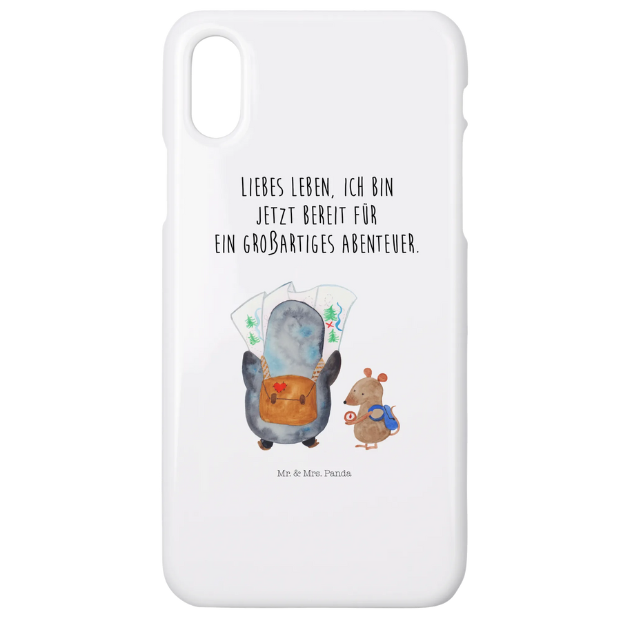 Handyhülle Pinguin & Maus Wanderer - Iphone 10 Handyhülle - mit Spruch - Weiß