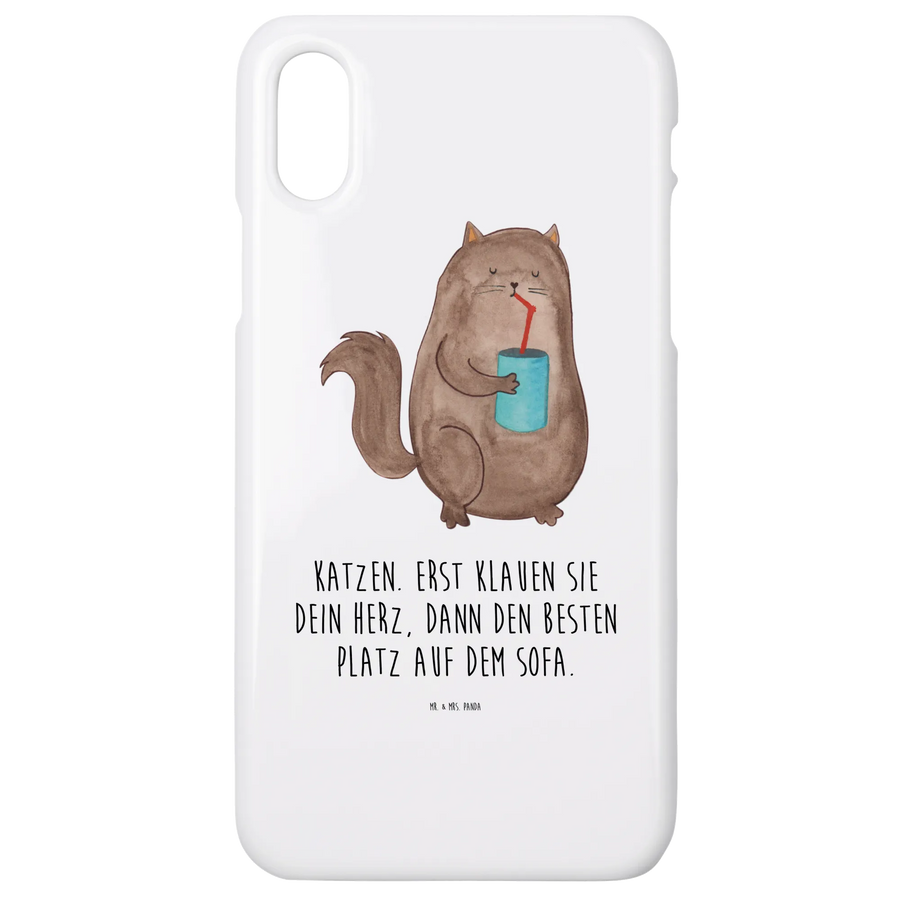 Entdecke die perfekte Handyhülle für Katzenliebhaber! Unsere iPhone 10 Handyhülle mit dem zauberhaften Motiv 'Katze Dose' aus der einzigartigen Katzen - Kollektion bringt den Charme deiner Lieblingskatze direkt auf dein Handy. Handgezeichnet von Mrs. Panda, zeigt das Design eine süße Katze, die begeistert eine Dose in der Hand hält und daraus trinkt. Diese Handyhülle ist nicht nur ein stilvolles Zubehör, sondern schützt dein iPhone 10 auch vor Kratzern und Stößen.