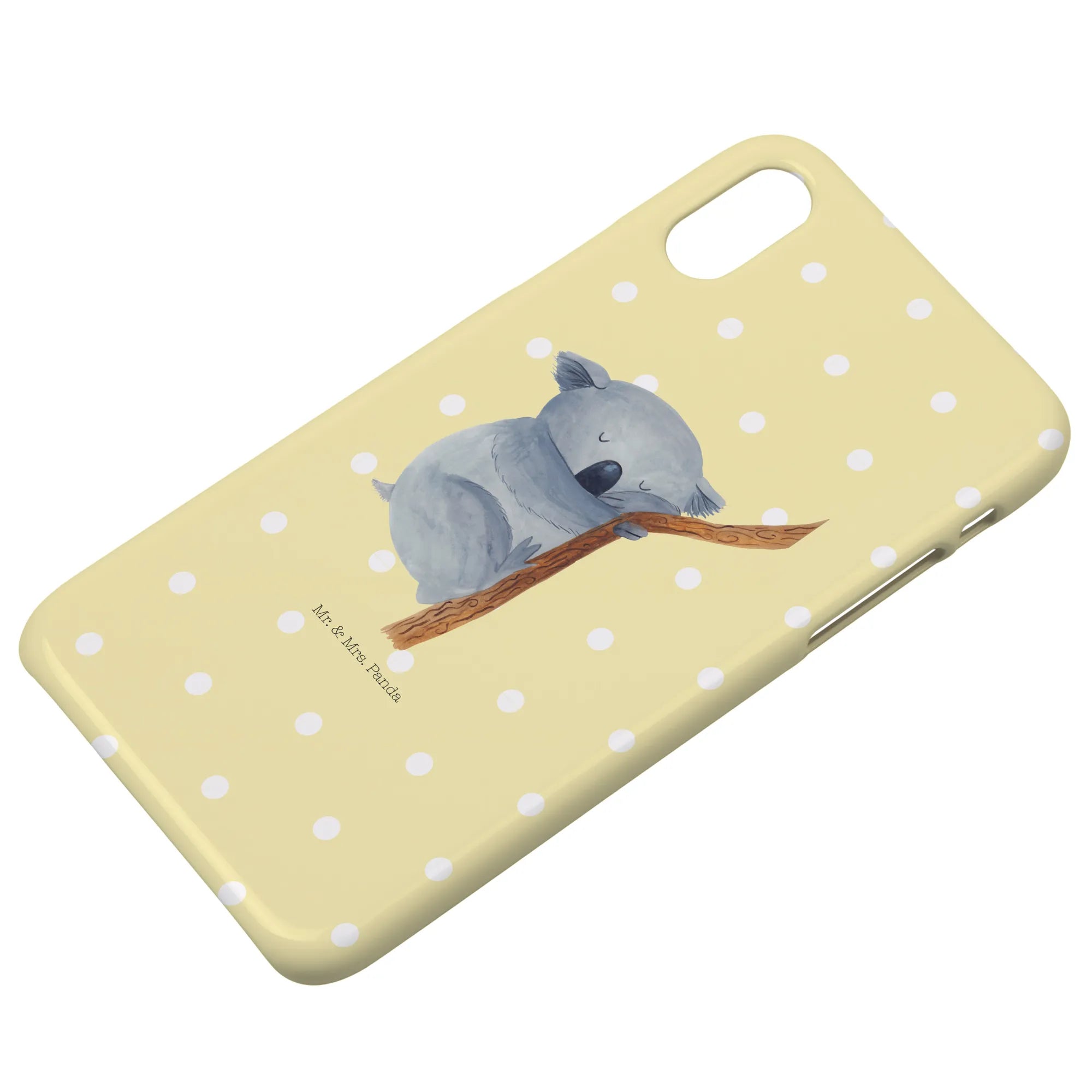 Die iPhone XR Handyhülle von Mr. & Mrs. Panda aus der Small World-Kollektion verbindet Schutz mit einem zauberhaften Design. Ein niedlicher, verträumter Koalabär kuschelt sich an einen Ast, umgeben von einem sanften pastellgelben Hintergrund. Dieses Motiv bringt Freude in den Alltag und ist gleichzeitig dezent genug, um überall mit dabei zu sein.