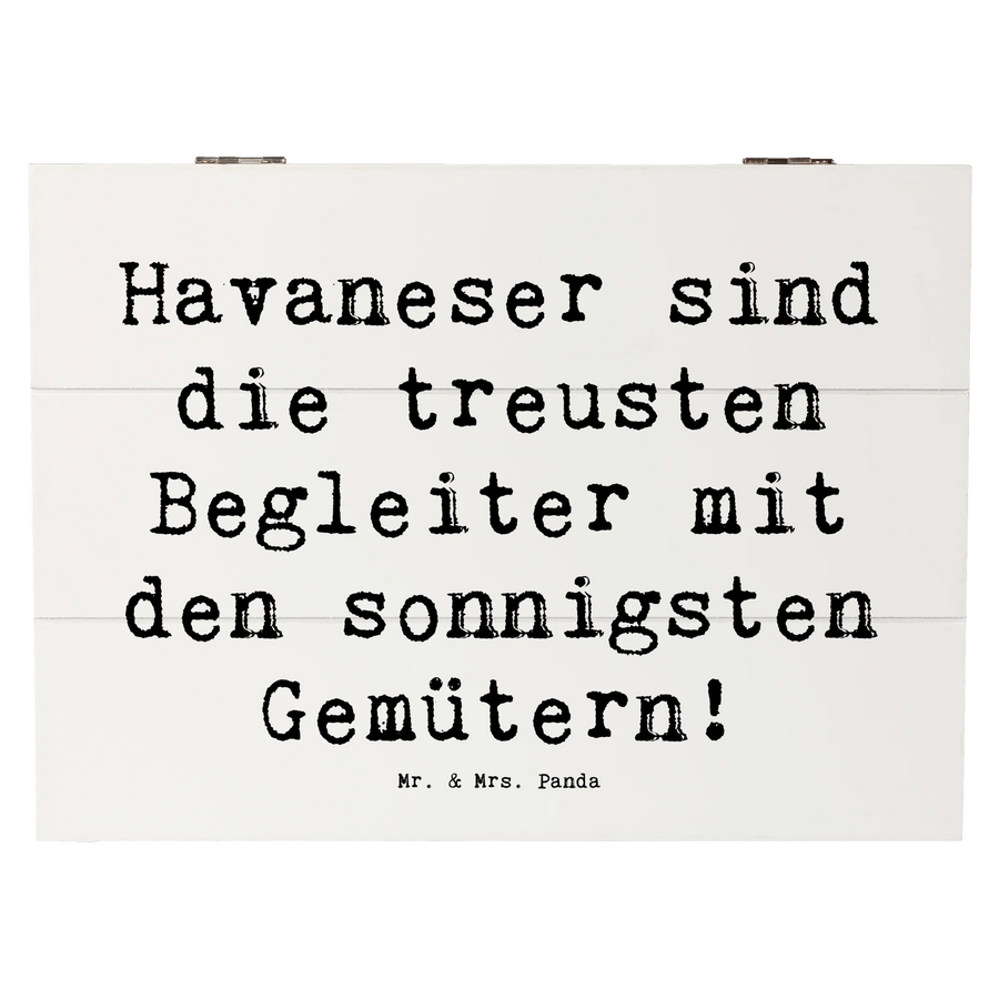 Die wunderschöne Holzkiste von Mr. & Mrs. Panda ist nicht nur praktisch, sondern auch ein echter Hingucker! Mit dem liebevollen Motiv des Havanesers und dem herzlichen Spruch "Havaneser sind die treusten Begleiter mit den sonnigsten Gemütern!" bringt diese Kiste Freude in jedes Zuhause.