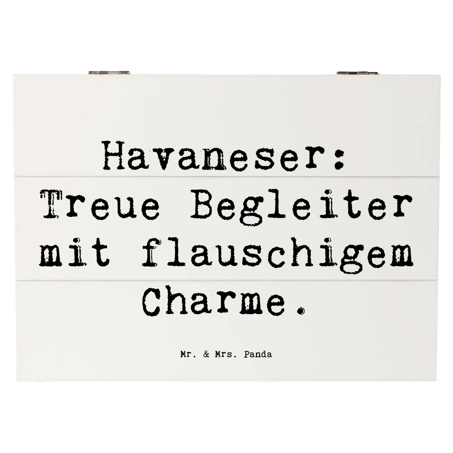 Die wunderschöne Holzkiste von Mr. & Mrs. Panda ist der perfekte Aufbewahrungsort für all deine Schätze. Mit dem liebevoll gestalteten Motiv des Havanesers und dem Spruch "Havaneser: Treue Begleiter mit flauschigem Charme" ist diese Kiste nicht nur ein praktisches Accessoire, sondern auch ein echter Blickfang in jedem Raum.