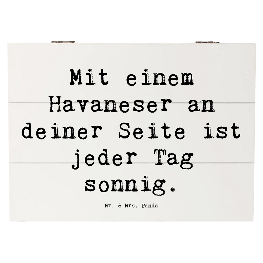 Die wunderschöne Holzkiste von Mr. & Mrs. Panda ist der perfekte Aufbewahrungsort für all deine Schätze und Erinnerungen. Mit einem liebevollen Motiv des Havanesers und einem fröhlichen Spruch – "Mit einem Havaneser an deiner Seite ist jeder Tag sonnig" – zaubert diese Kiste jedem ein Lächeln ins Gesicht.