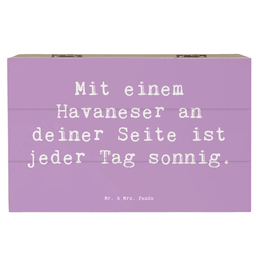 Die wunderschöne Holzkiste von Mr. & Mrs. Panda ist der perfekte Aufbewahrungsort für all deine Schätze und Erinnerungen. Mit einem liebevollen Motiv des Havanesers und einem fröhlichen Spruch – "Mit einem Havaneser an deiner Seite ist jeder Tag sonnig" – zaubert diese Kiste jedem ein Lächeln ins Gesicht.