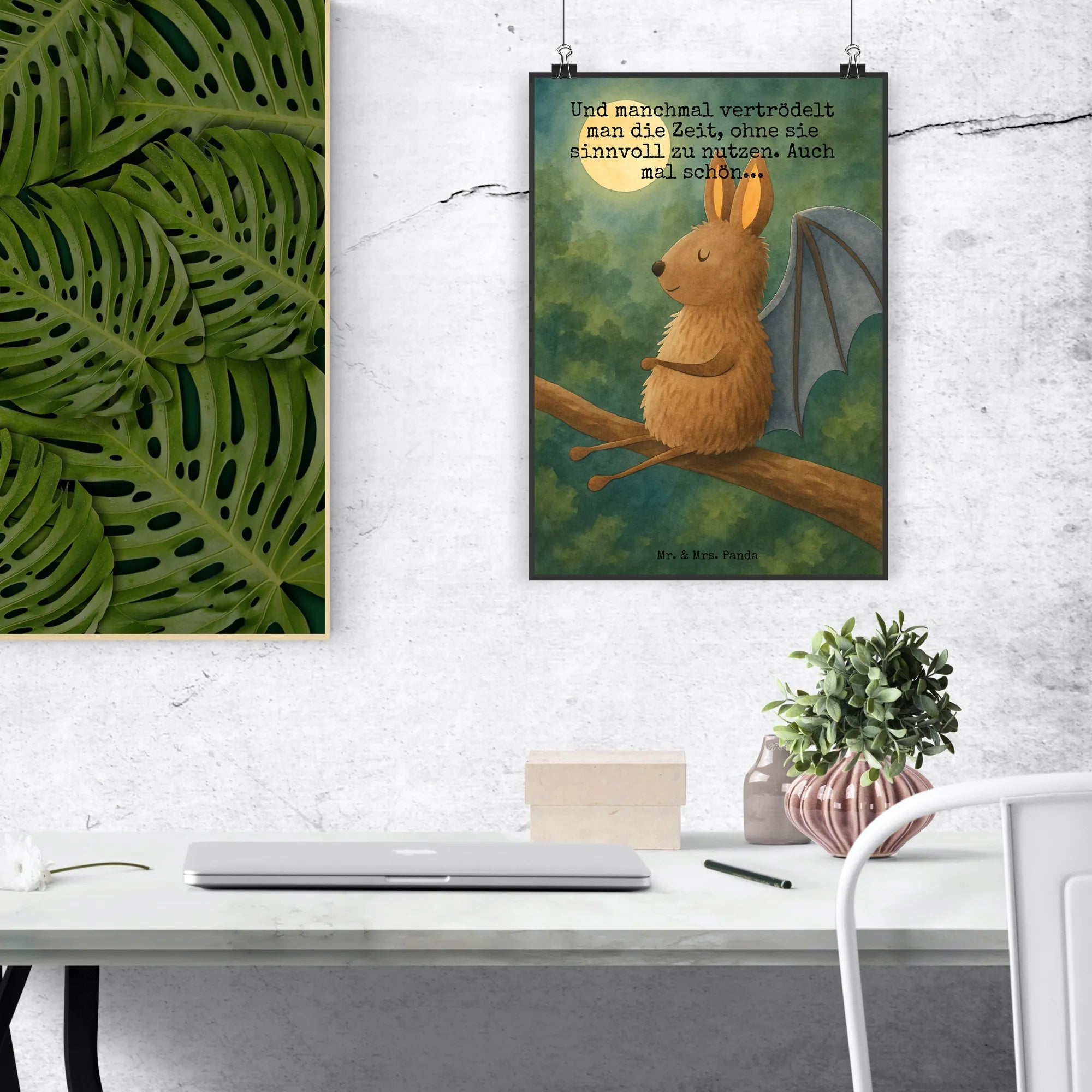 Mr. & Mrs. Panda Motiv - Entspannte Fledermaus - Entspannen und Motivation - Wanddekoration