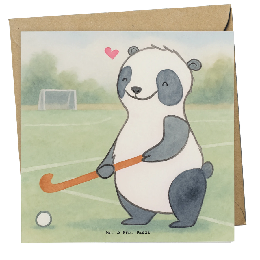 Deluxe Karte Panda Hockey spielen Design Hochwertige Grußkarte, Glückwunschkarte, Einladungskarte, Klappkarte, Karte, Geburtstagskarte, Hochzeitskarte, Grußkarte, Hochwertige Klappkarte, Geschenk, Sport, Sportart, Hobby, Schenken, Danke, Dankeschön, Auszeichnung, Gewinn, Sportler, Hockeyschläger, Feldhockey, Hockey spielen, Hockey Verein