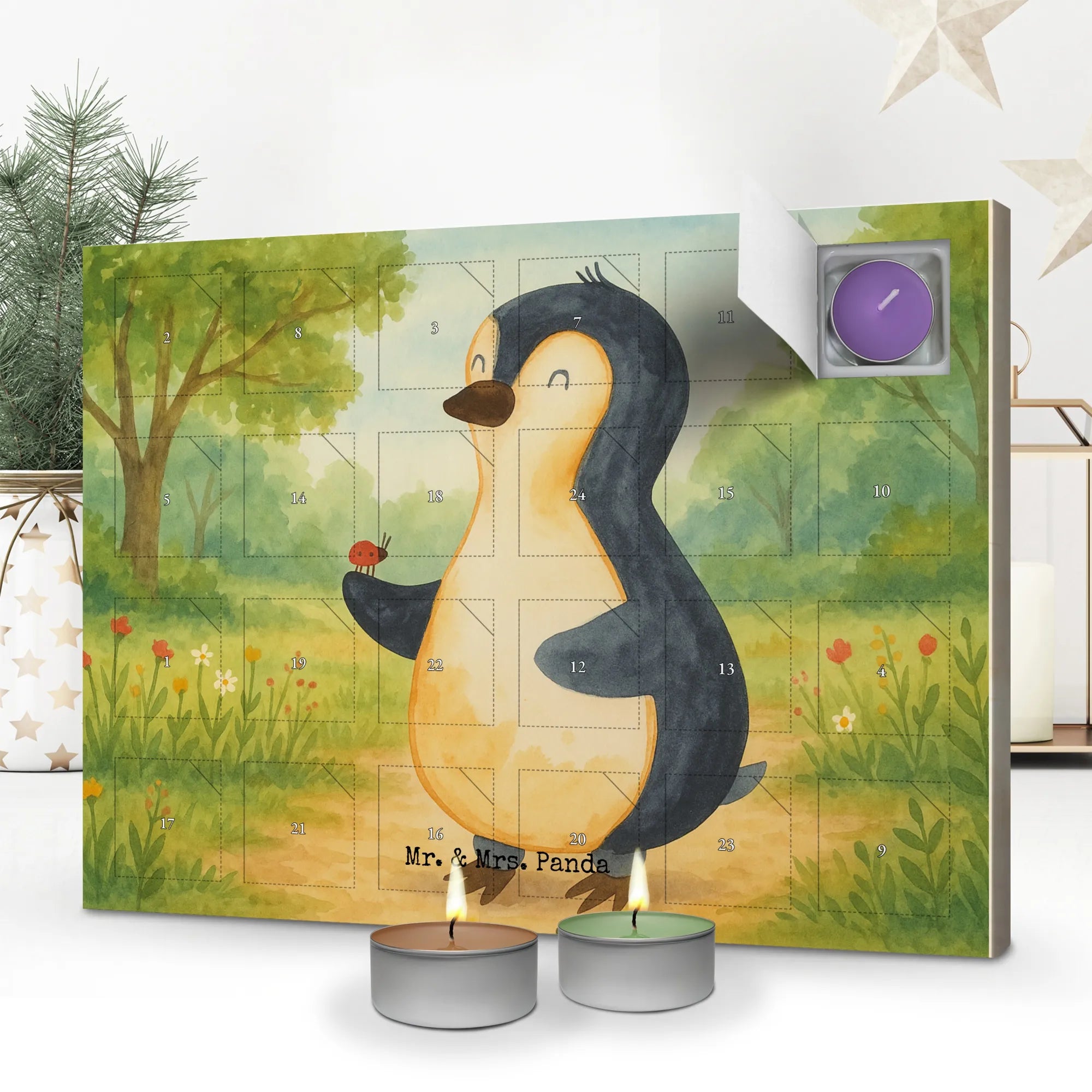 Entdecke den Duftkerzen Adventskalender Pinguin Marienkäfer aus der Pinguin - Kollektion von Mr. & Mrs. Panda – ein zauberhaftes Adventserlebnis für alle Sinne. Der knuddelige Pinguin mit dem fröhlichen Marienkäfer auf seiner Flosse ist eine liebevolle, handgezeichnete Illustration von Mrs. Panda, die sofort gute Laune verbreitet. Perfekt als Geschenk für Pinguin-Liebhaber, Duftkerzen-Fans oder als besondere Überraschung in der Vorweihnachtszeit. 🎁