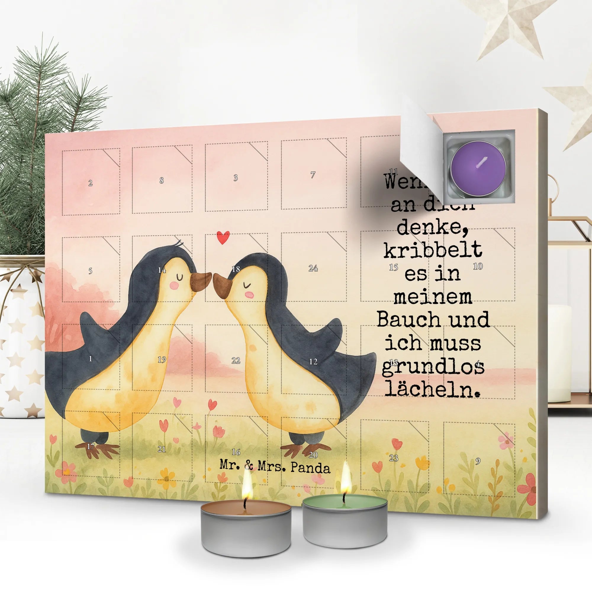 Duftkerzen Adventskalender Pinguine Kuss Design - mit Spruch