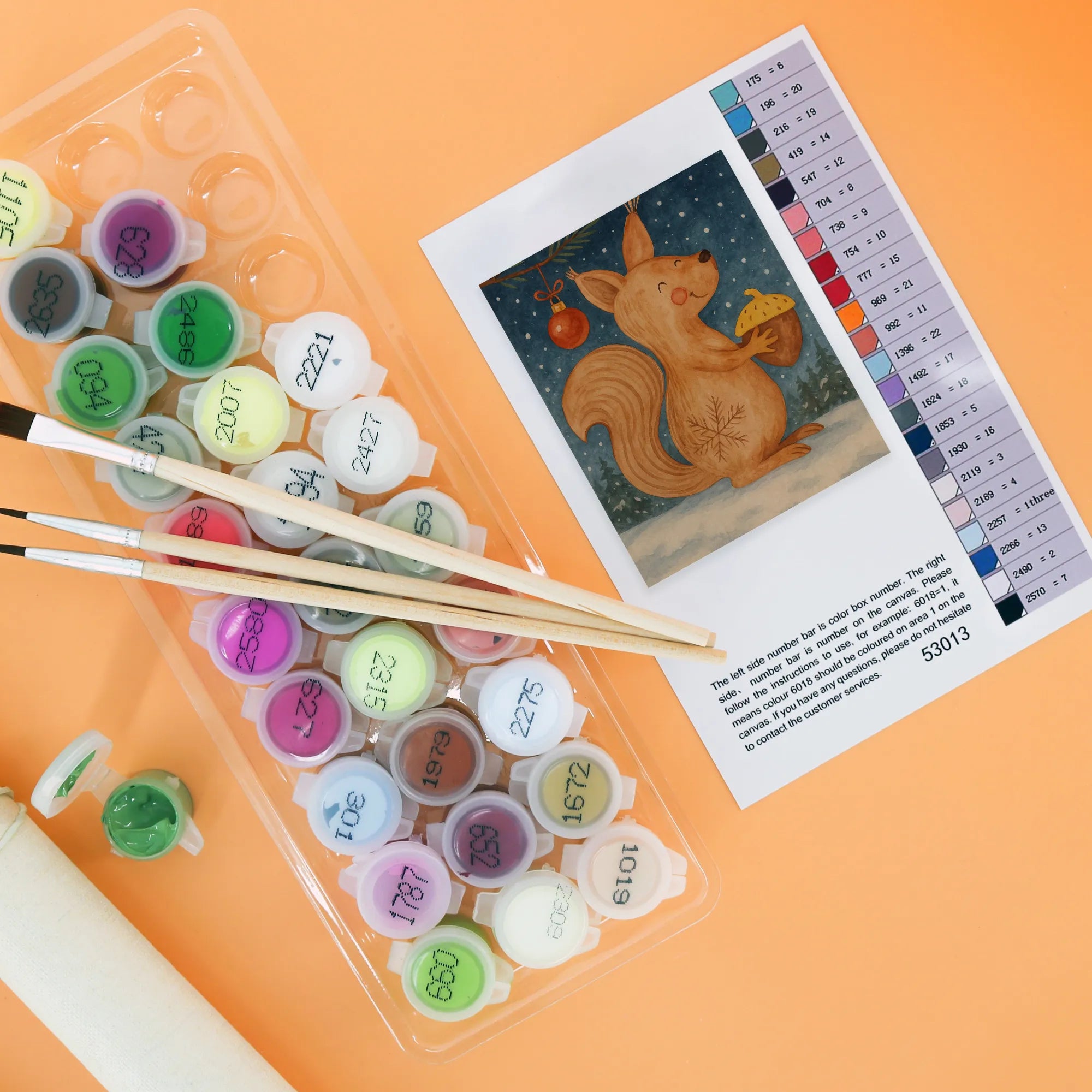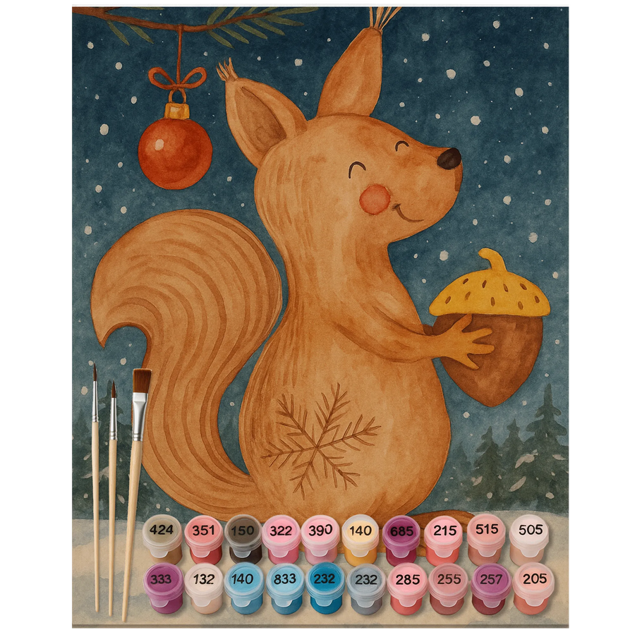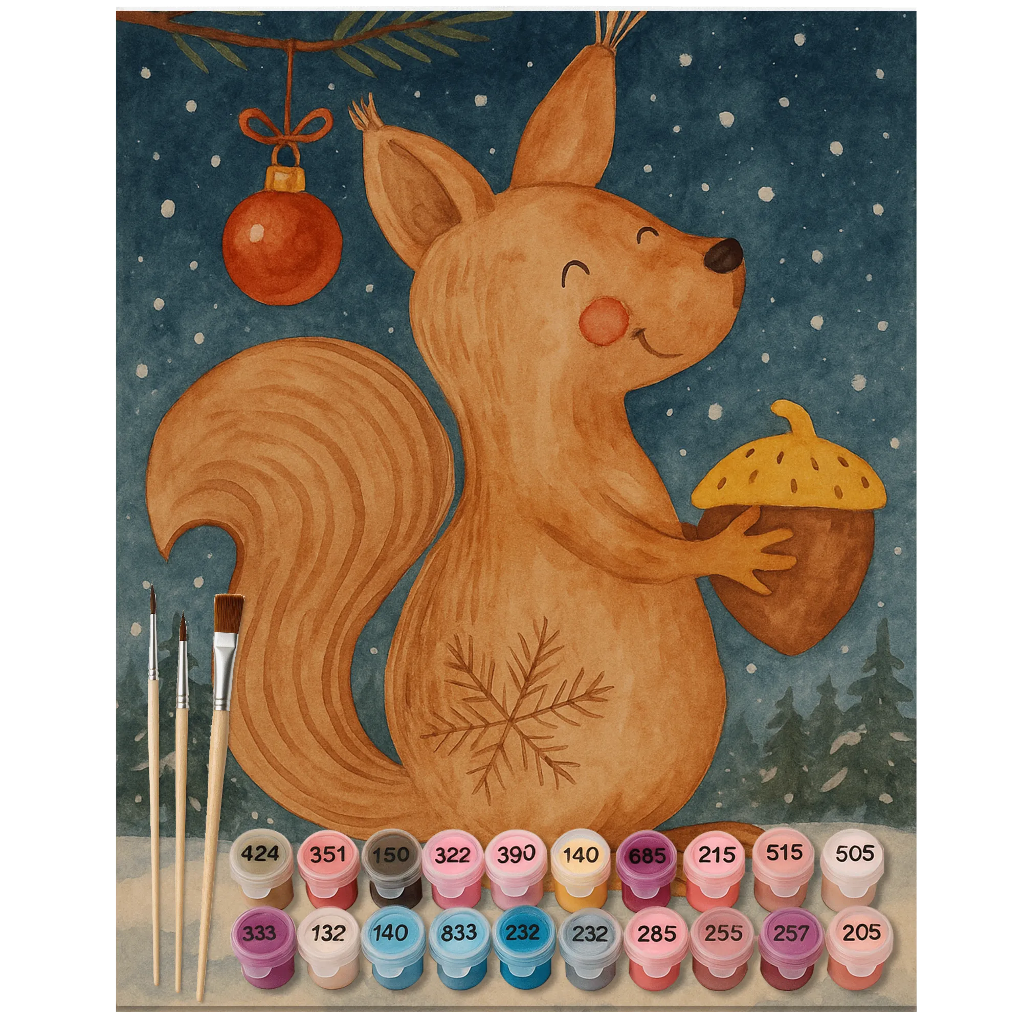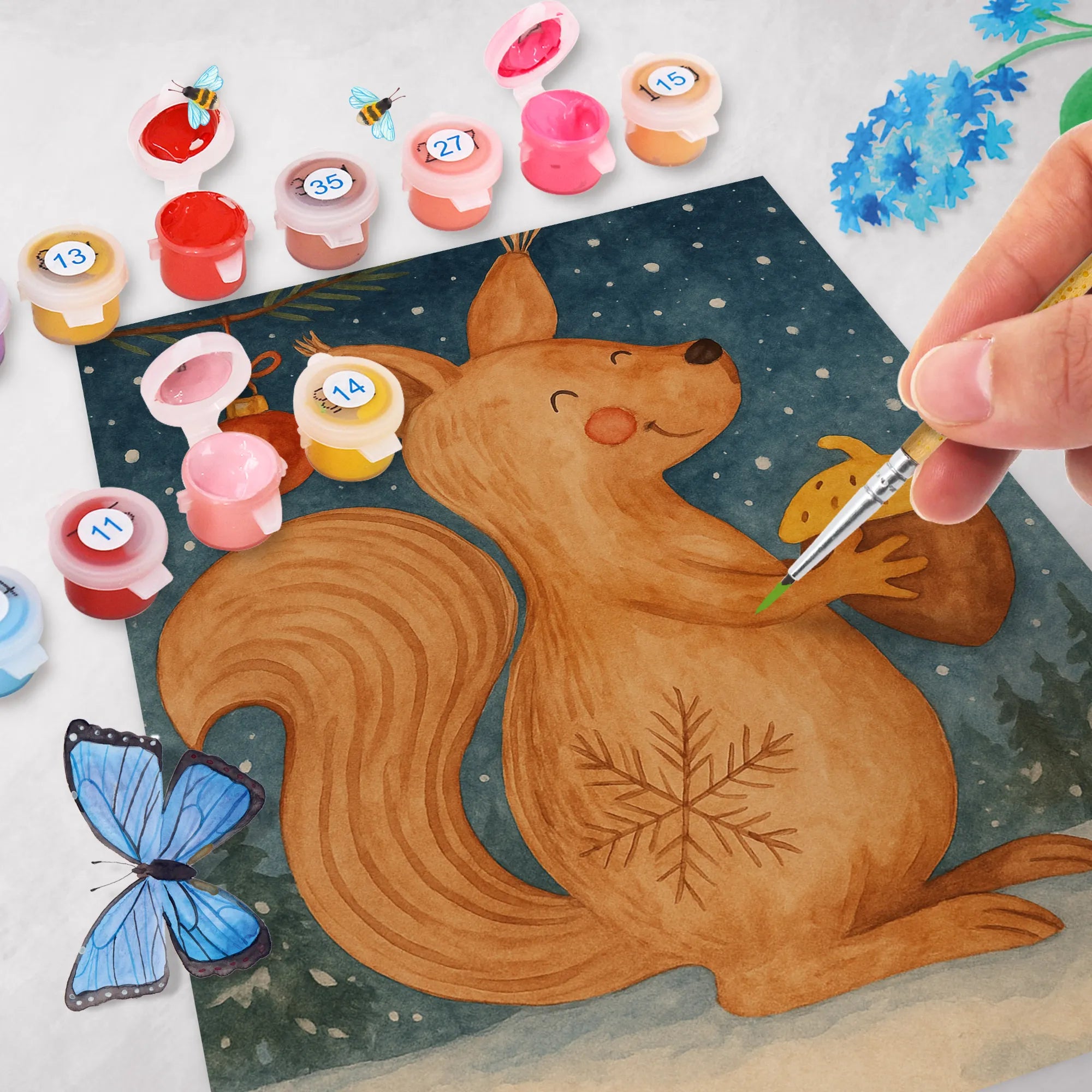 Malen nach Zahlen Eichhörnchen Weihnachten Design - Ohne Rahmen - 24 Farben (Standard)