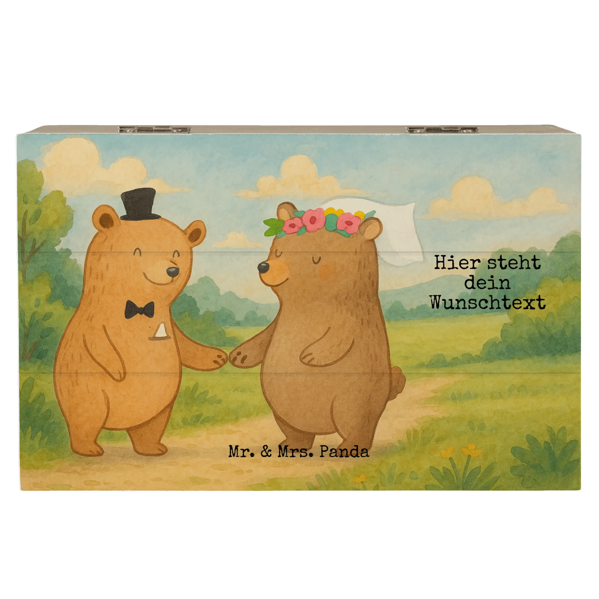 Personalisierte Holzkiste Bären Heirat Design - 19 x 12 cm