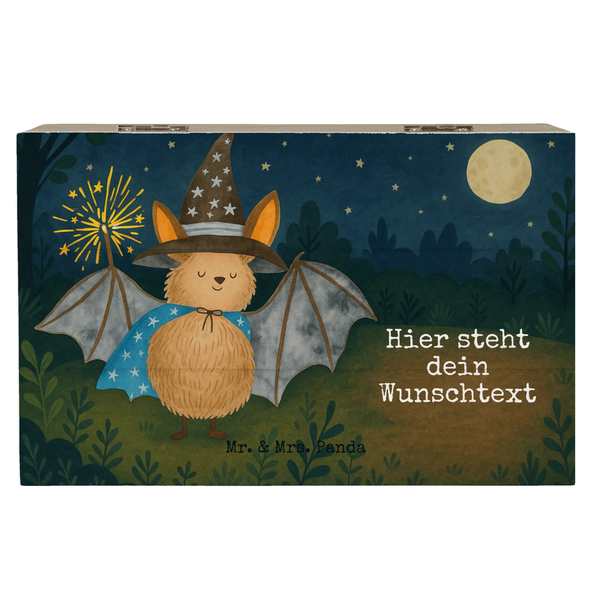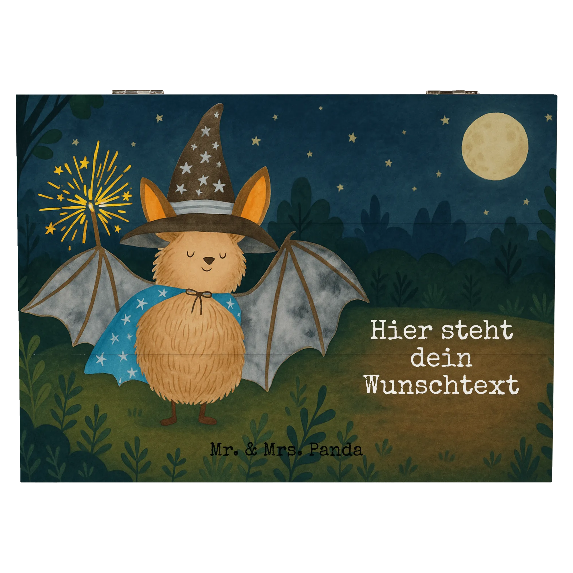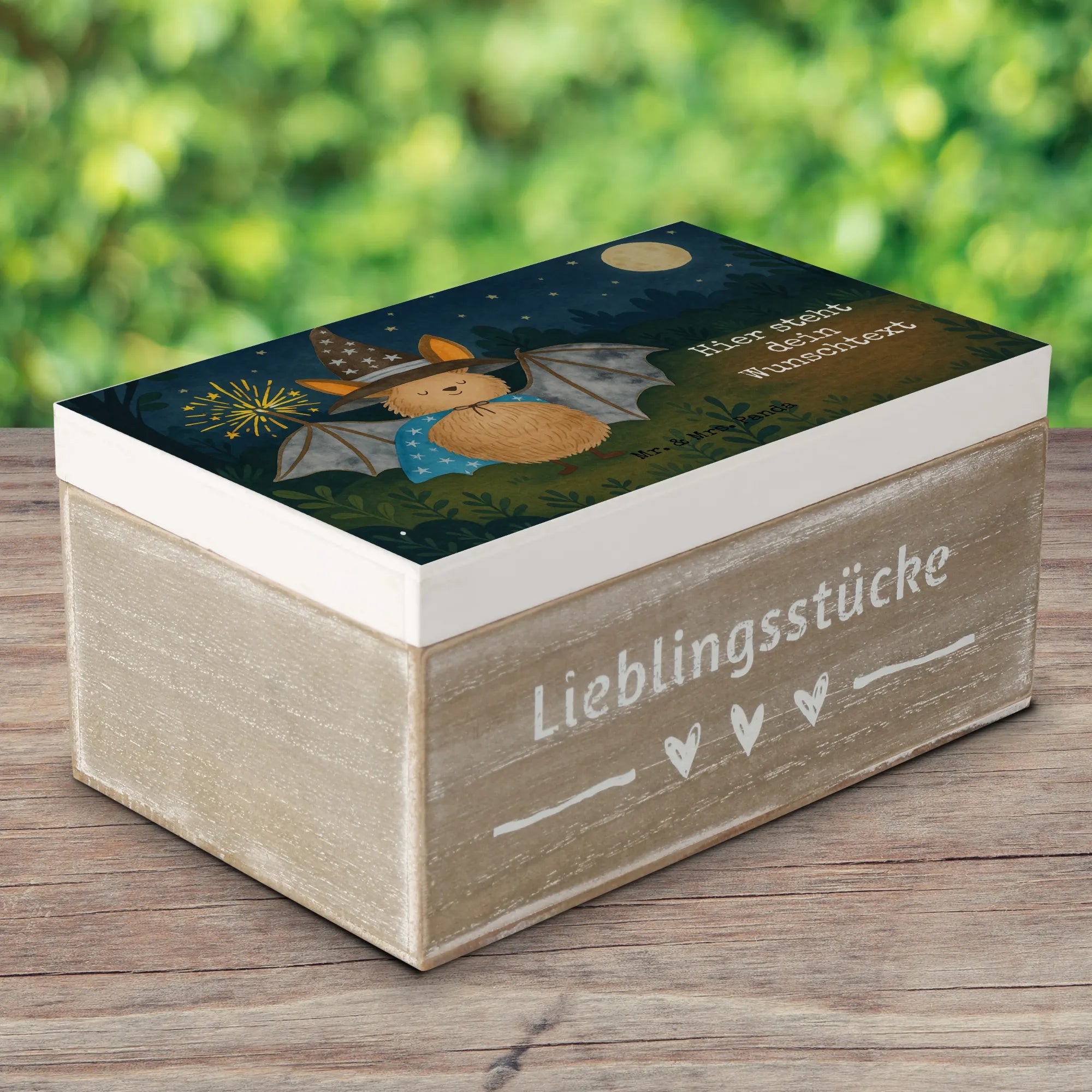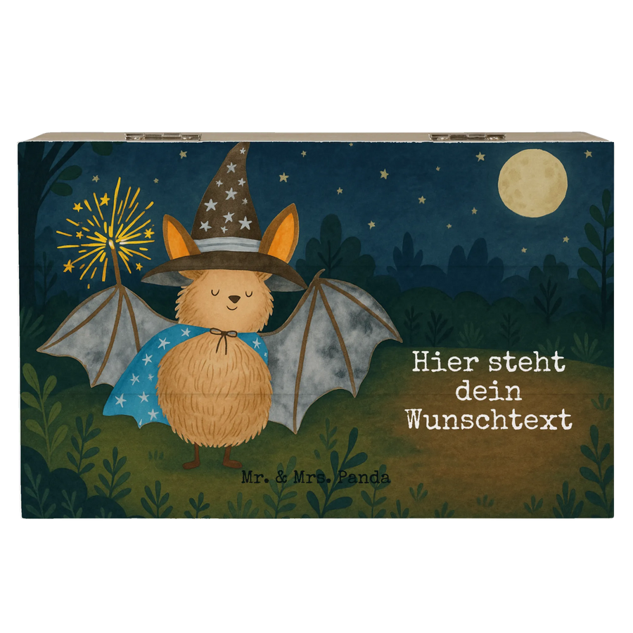 Personalisierte Holzkiste Fledermaus Zauberer Design - 19 x 12 cm