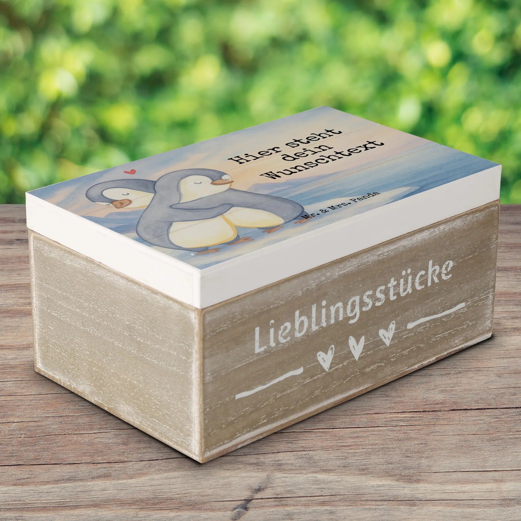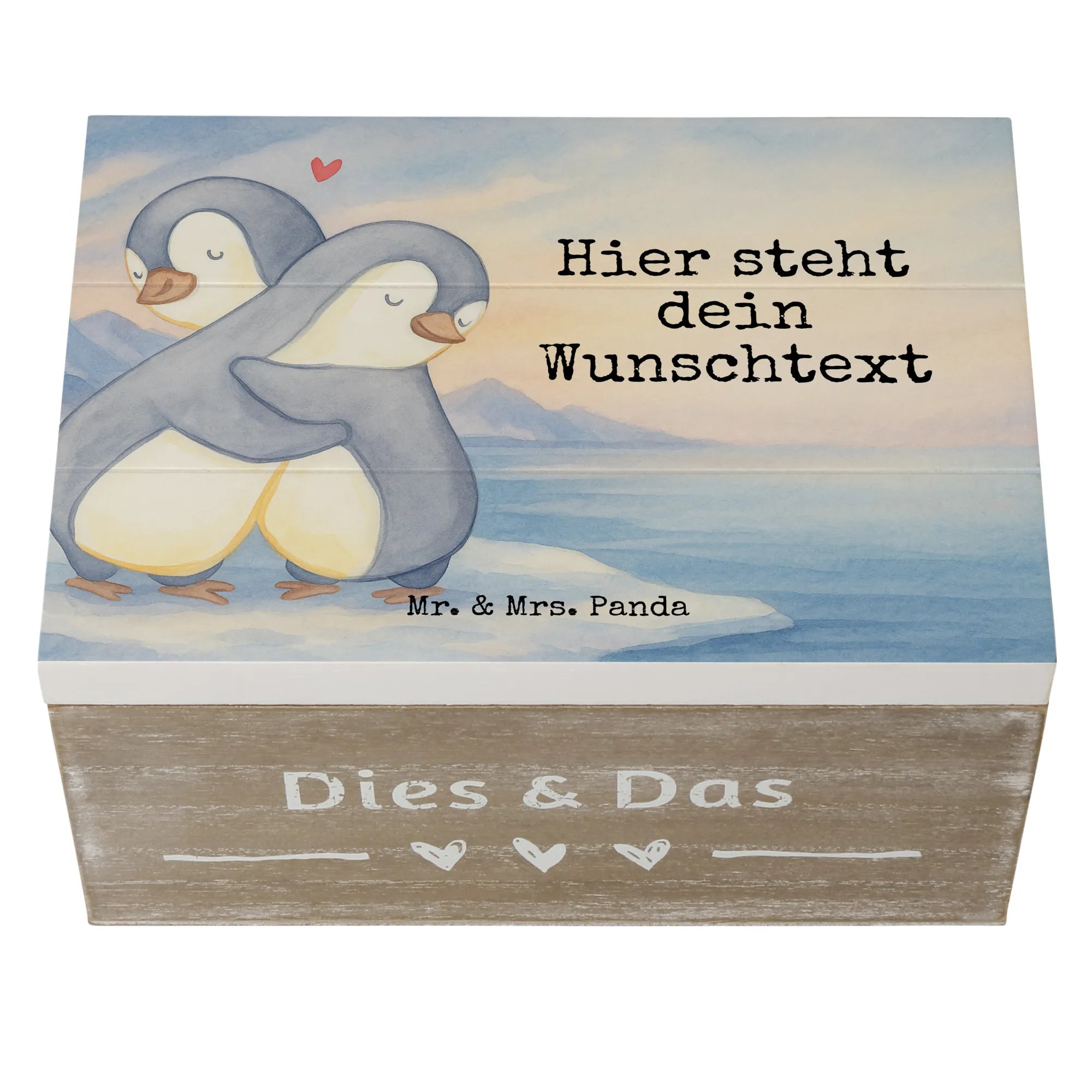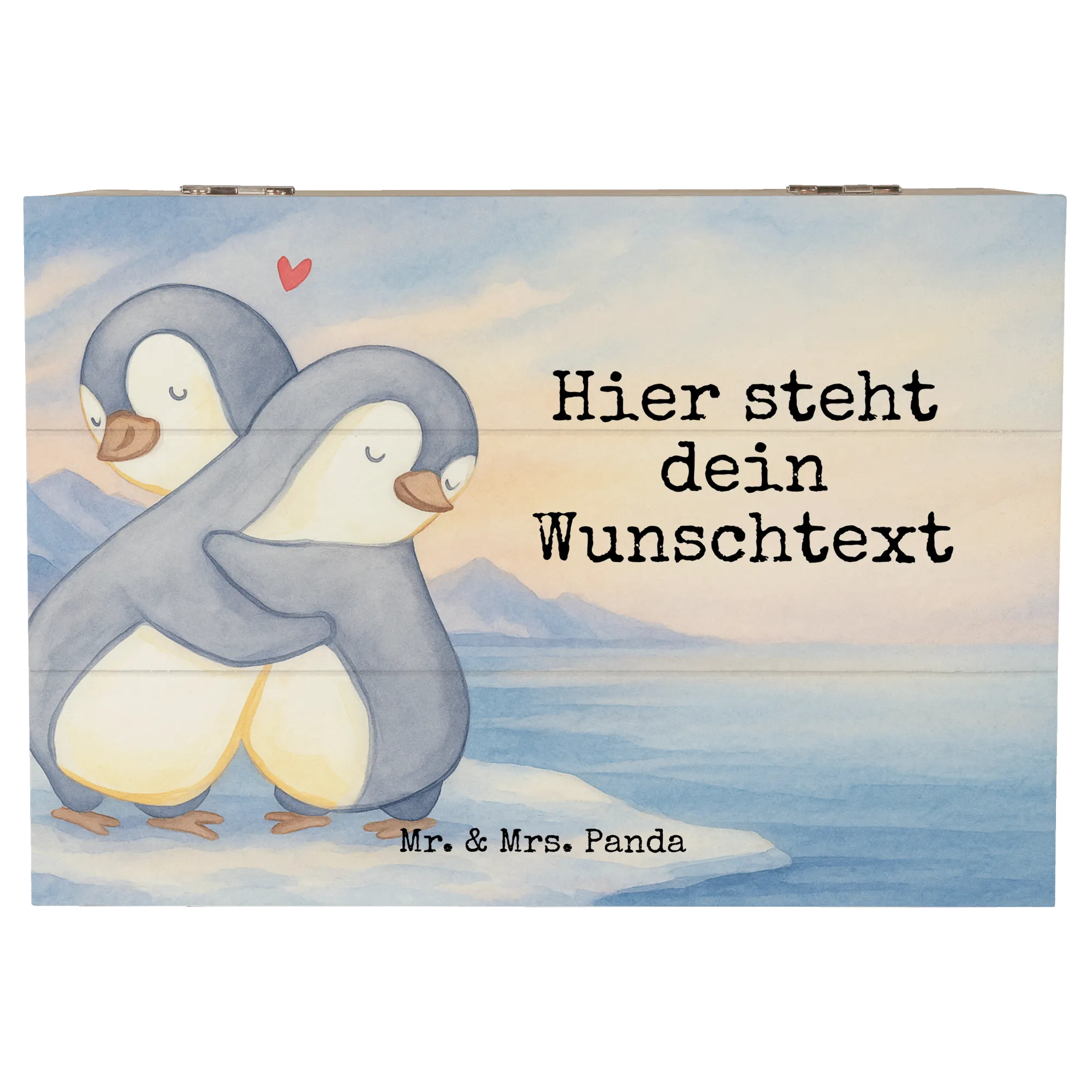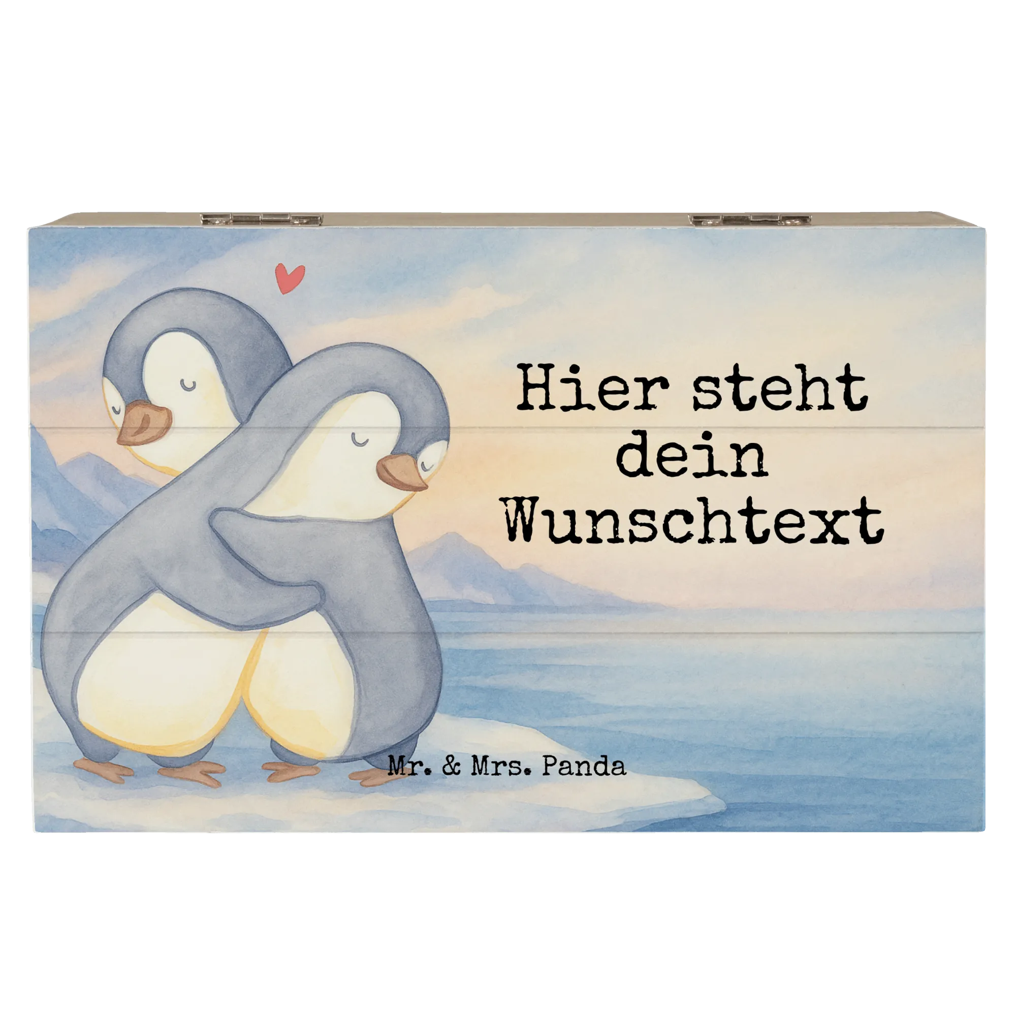 Personalisierte Holzkiste Pinguine Kuscheln Design – Mr. & Mrs. Panda