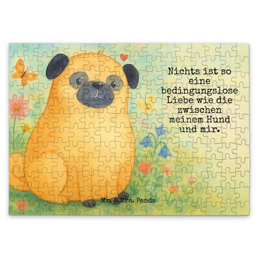 Puzzle Mops Design - 192 Teile - mit Spruch
