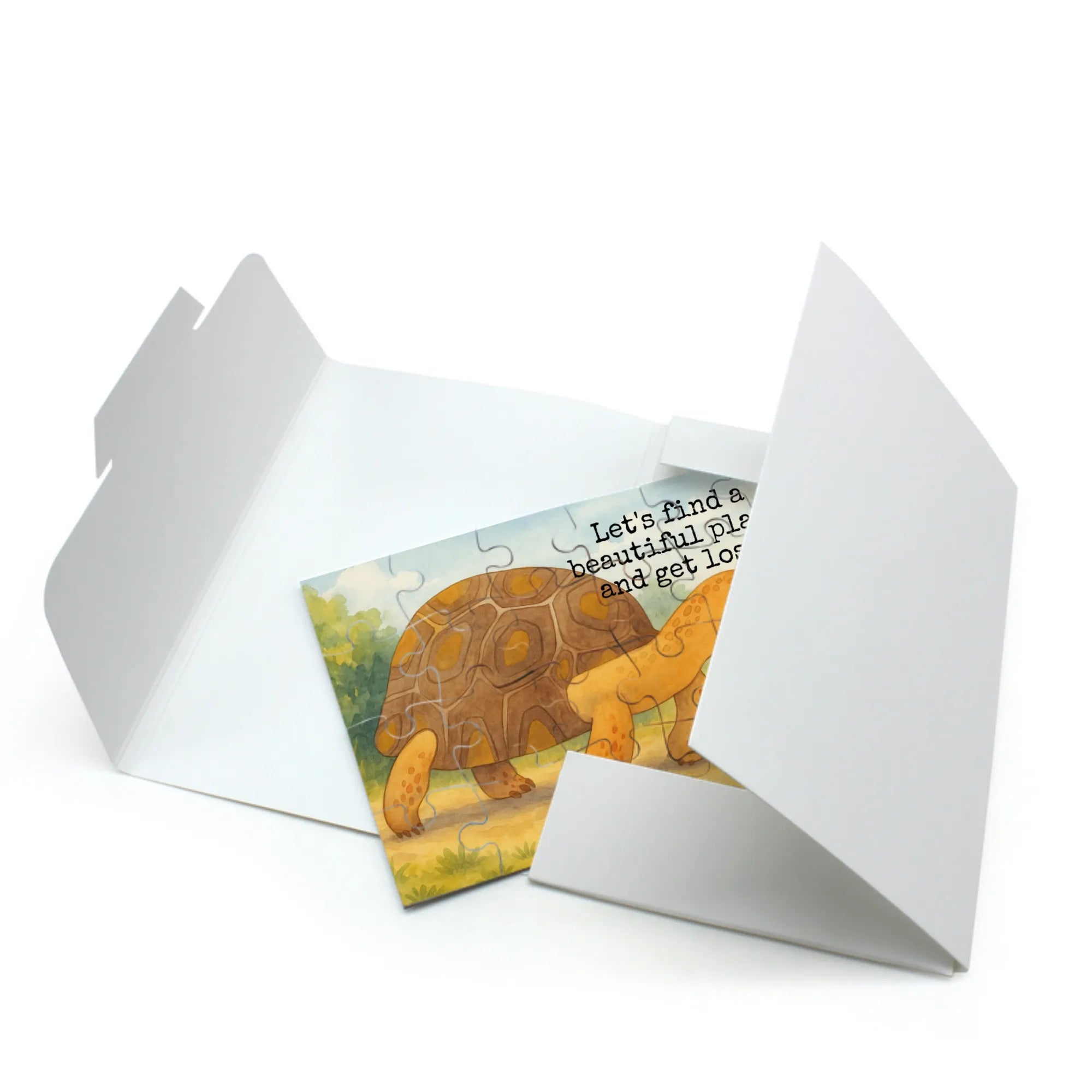 Betrachte das entspannte Antlitz dieser Schildkröte, die mit ihrem klassischen Panzer und den freundlichen Augen ein Gefühl der Ruhe ausstrahlt. Die Schildkröte legt den Fokus auf das Wesentliche und erinnert uns daran, dass auch langsame Schritte zum Ziel führen können. Ihr Motto 'Let's find a beautiful place and get lost' inspiriert uns, kleine Auszeiten im hektischen Alltag zu suchen, um den wahren Reichtum des Lebens zu erfahren. Es geht darum, neue Abenteuer zu erleben und vielleicht sogar einen Neustart zu wagen! Lass dich von ihrer Lebensfreude anstecken und mach dich bereit für unvergessliche Erlebnisse mit deinem Lieblingsmenschen.