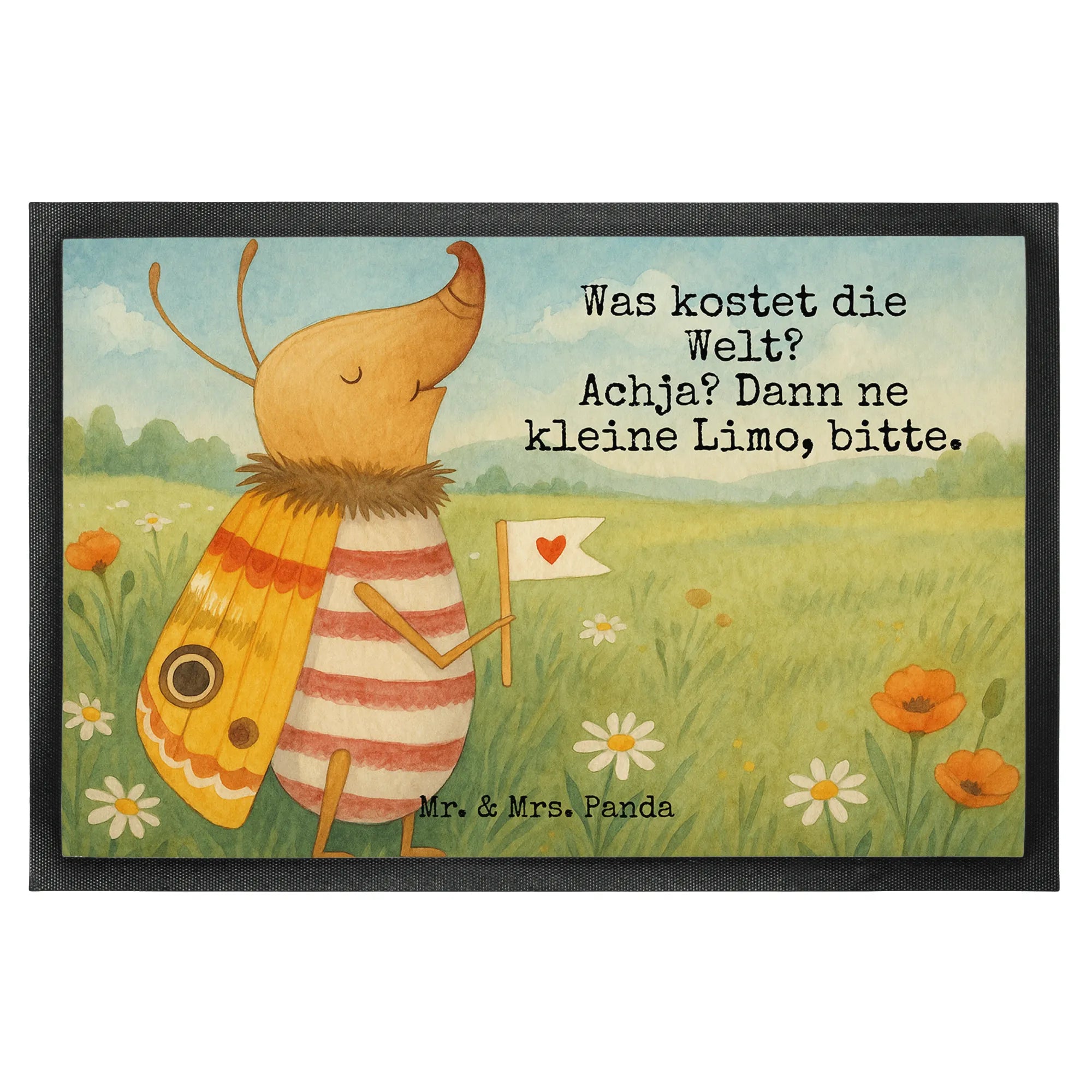 Kann ein kleiner Nachtfalter die Antwort auf die großen Fragen des Lebens halten? In der bezaubernden Welt von Mr. & Mrs. Panda definitiv! Mit einem frechen Lächeln und einem süßen Slogan 'Was kostet die Welt? Achja? Dann ne kleine Limo, bitte.' erinnert uns dieser entzückende Käfer daran, dass Glück in den kleinsten Momenten liegt. Das Motiv strahlt eine unschuldige Freude aus und ist eine perfekte Mischung aus Witz und Weisheit. Es ist eine Aufforderung, das Leben nicht zu ernst zu nehmen und sich daran zu erinnern, dass die Freuden des Lebens oft in den kleinen, süßen Momenten wie dem Genuss einer Limo liegen. Dieses liebevoll gestaltete Motiv ist eine wunderbare Erinnerung für jeden Tag und lässt sich ideal als Dekoration in der Küche oder anderen Räumlichkeiten einsetzen, um täglich ein Lächeln auf das Gesicht zu zaubern.