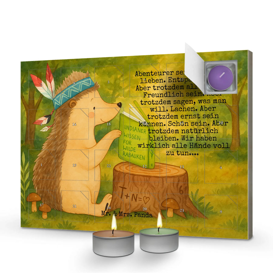 Duftkerzen Adventskalender Igel Federschmuck Design - mit Spruch
