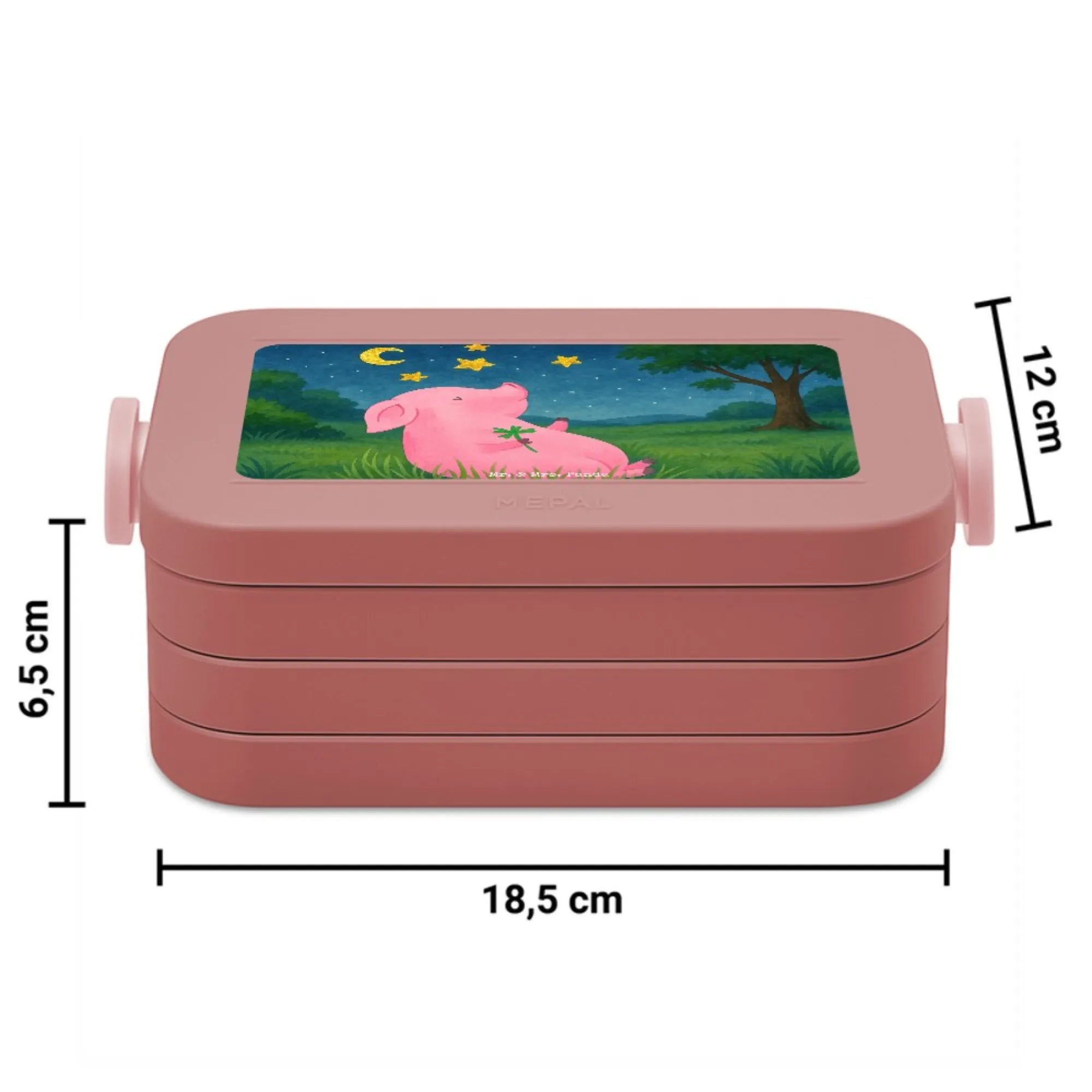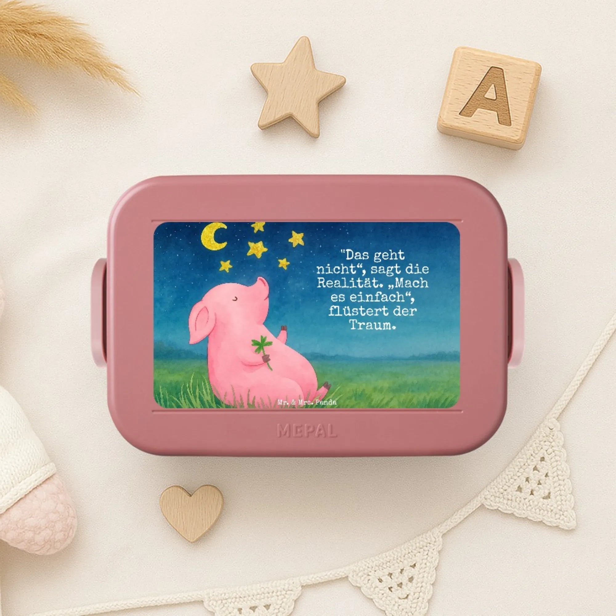 MEPAL Bentobox Schwein Glück Design - mit Spruch - Blau Pastell