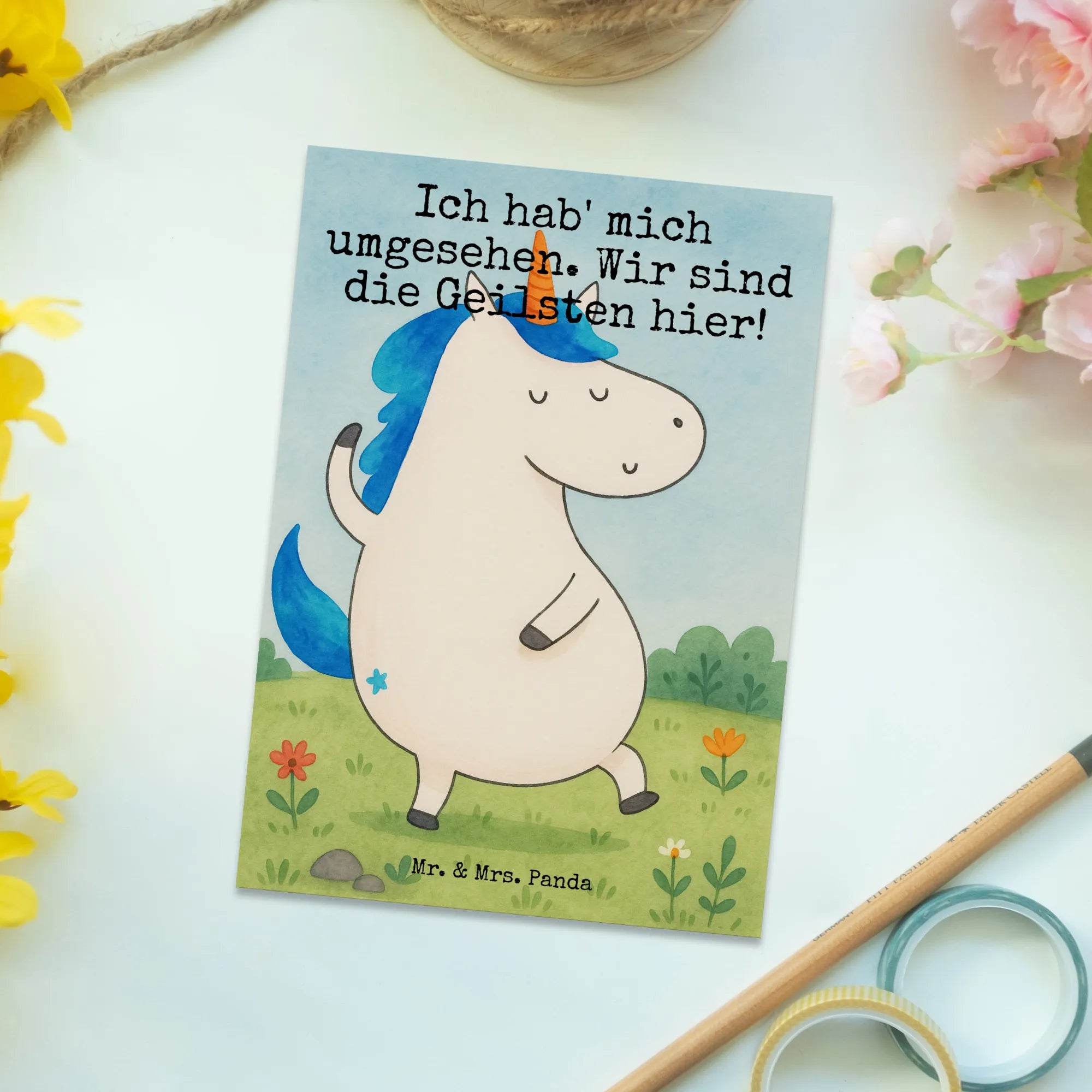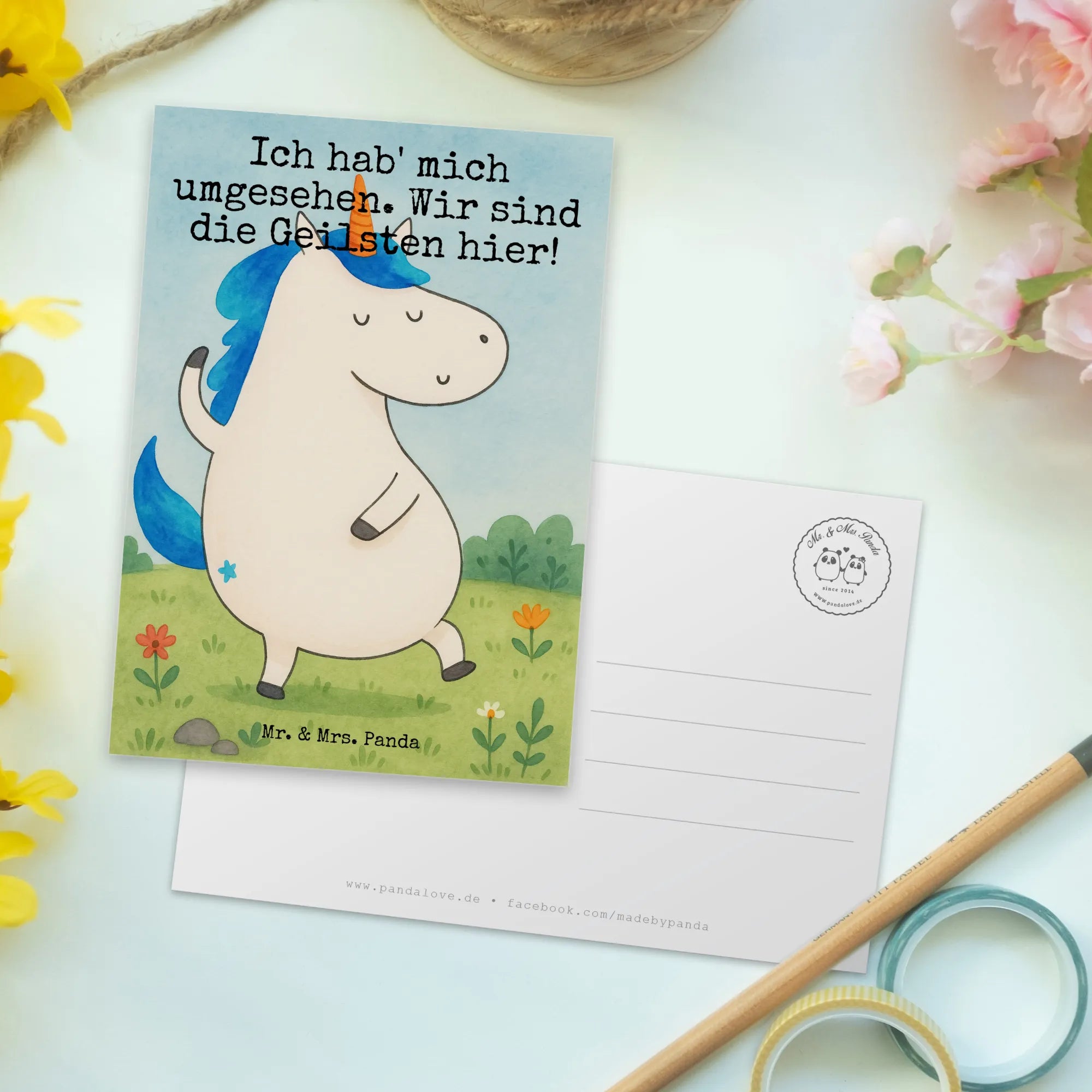 Postkarte Einhorn Mann Design – Mr. & Mrs. Panda