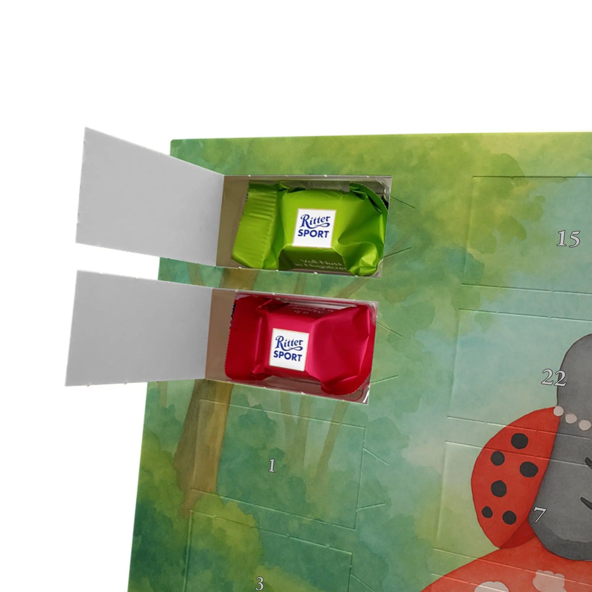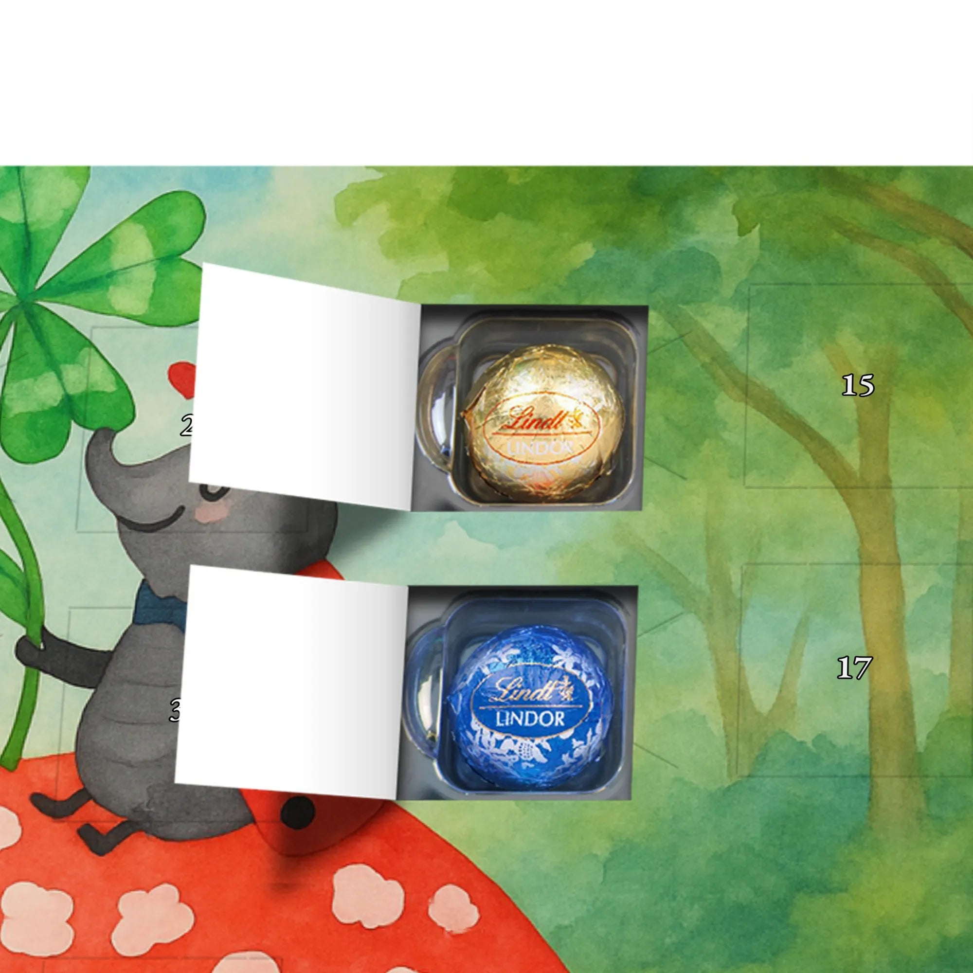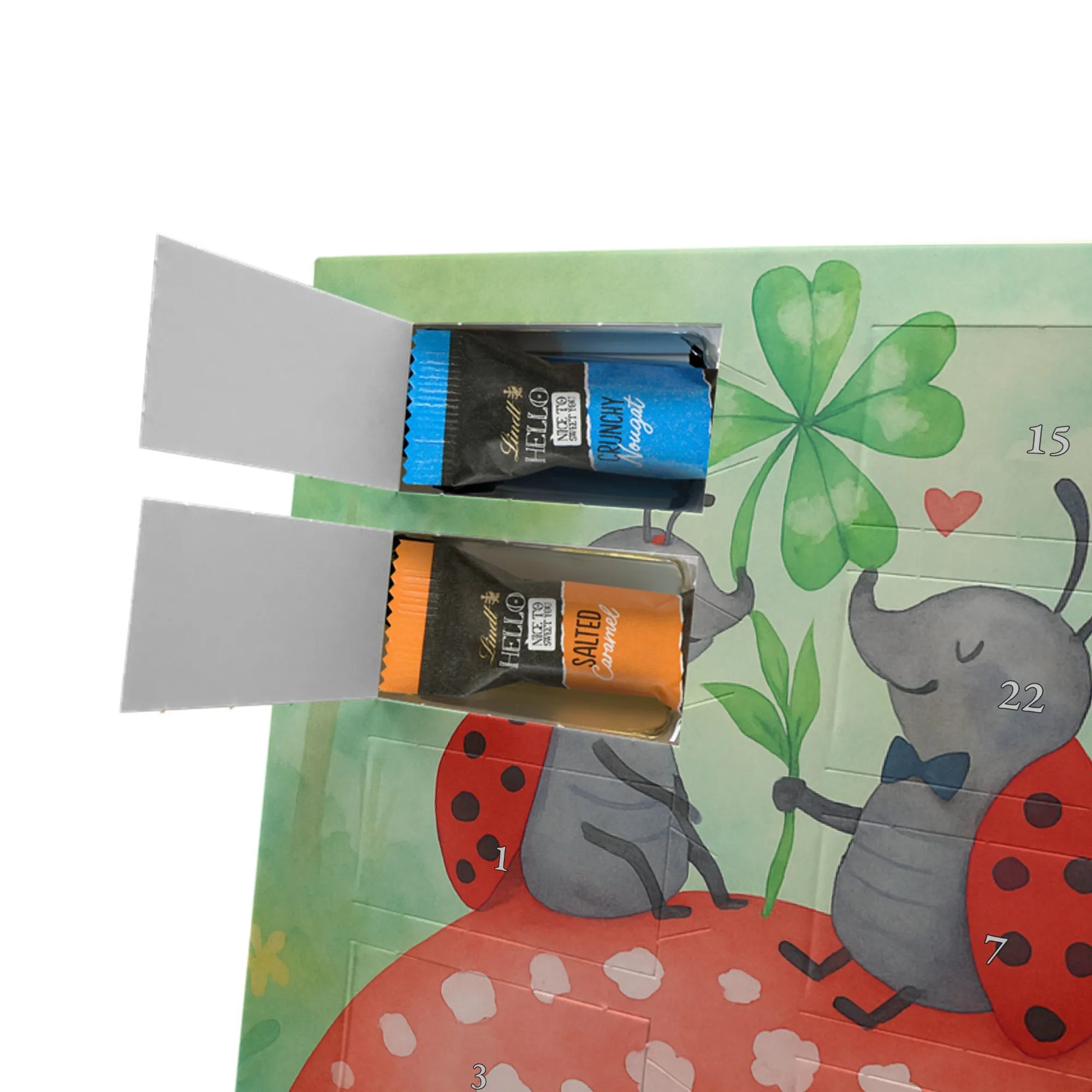 adventskalender mit schokolade Marienkäfer Fliegenpilz Design - Lindt HELLO - mit Spruch