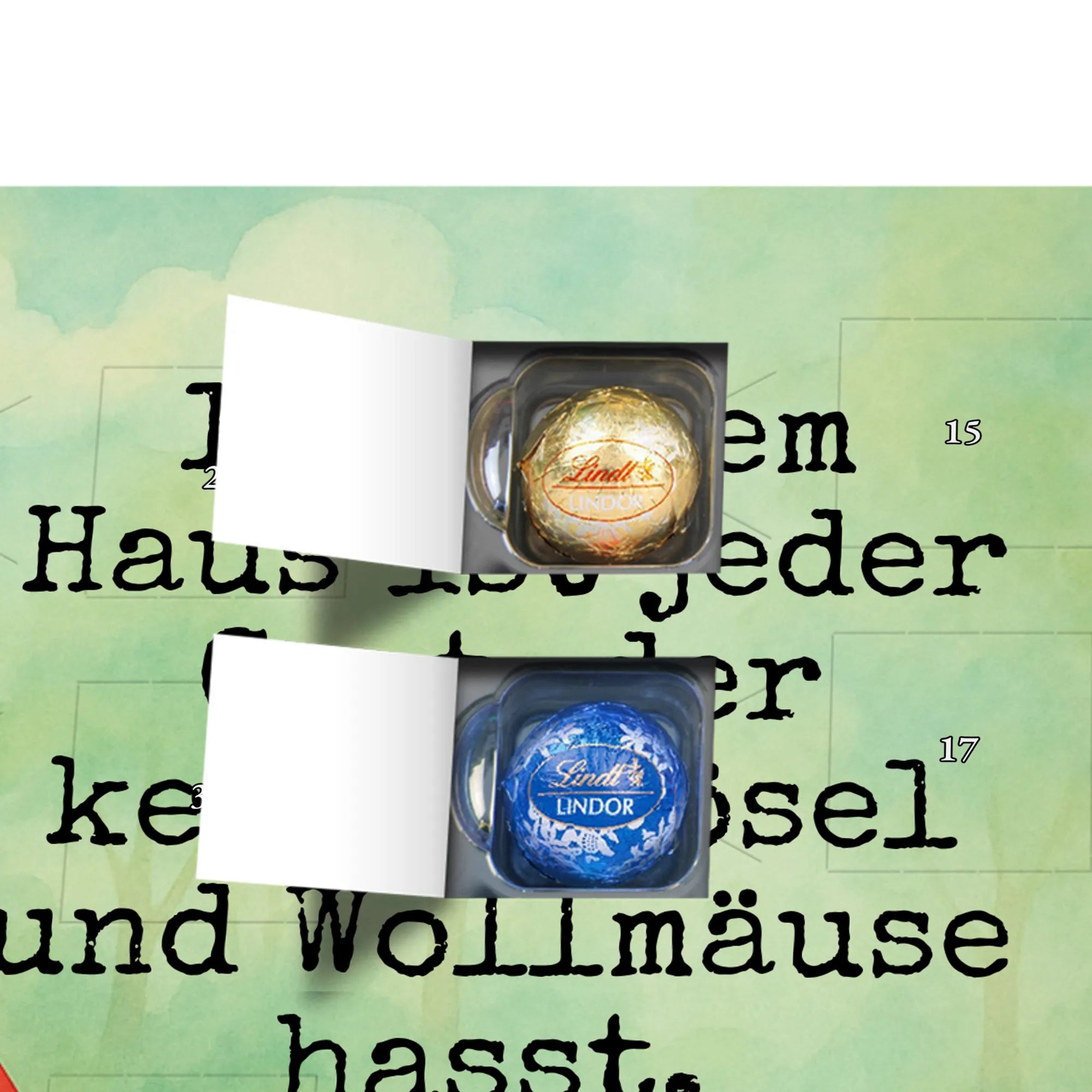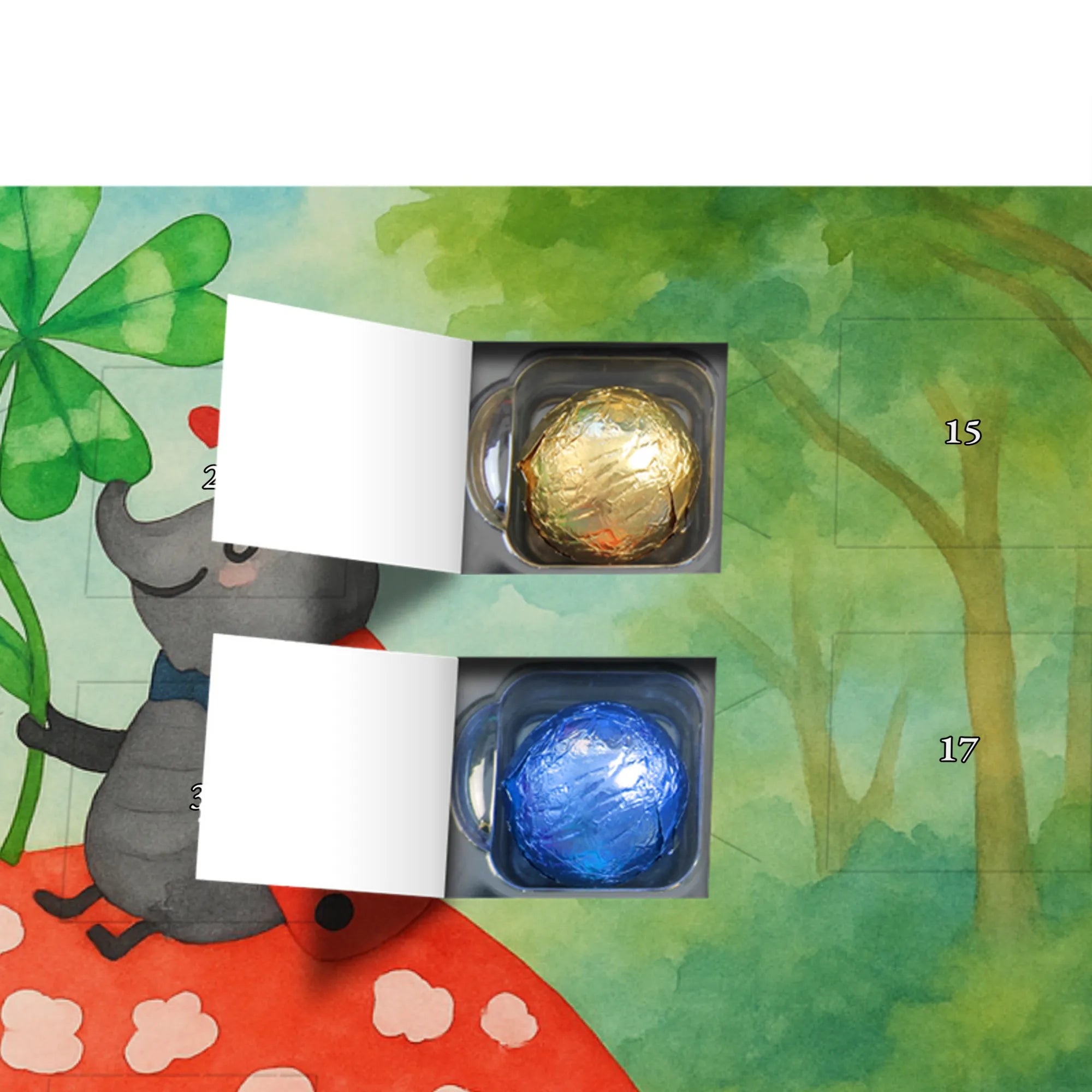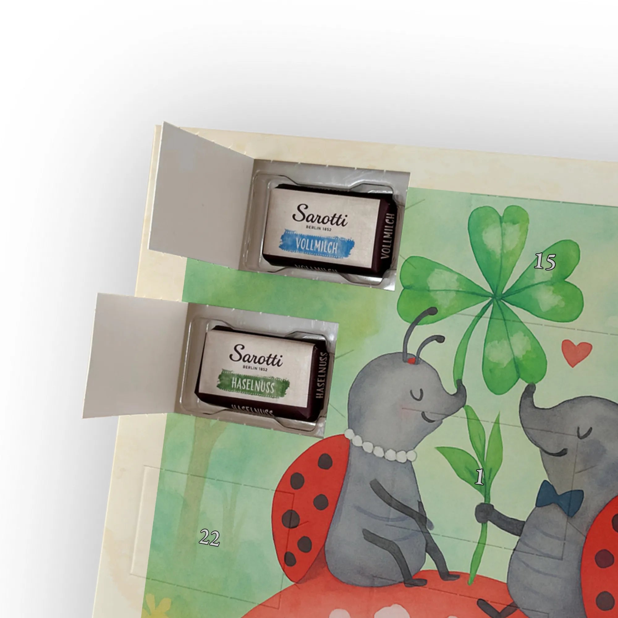 adventskalender mit schokolade Marienkäfer Fliegenpilz Design - Lindt HELLO - mit Spruch