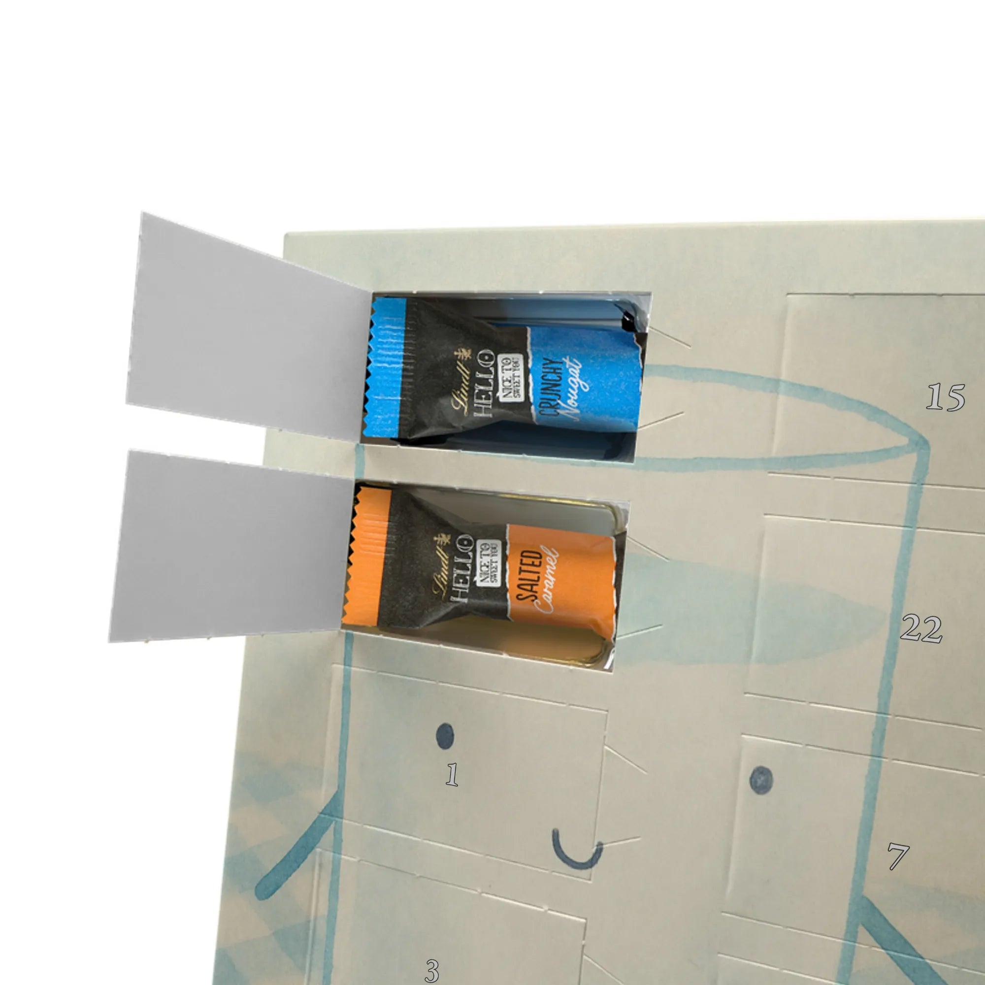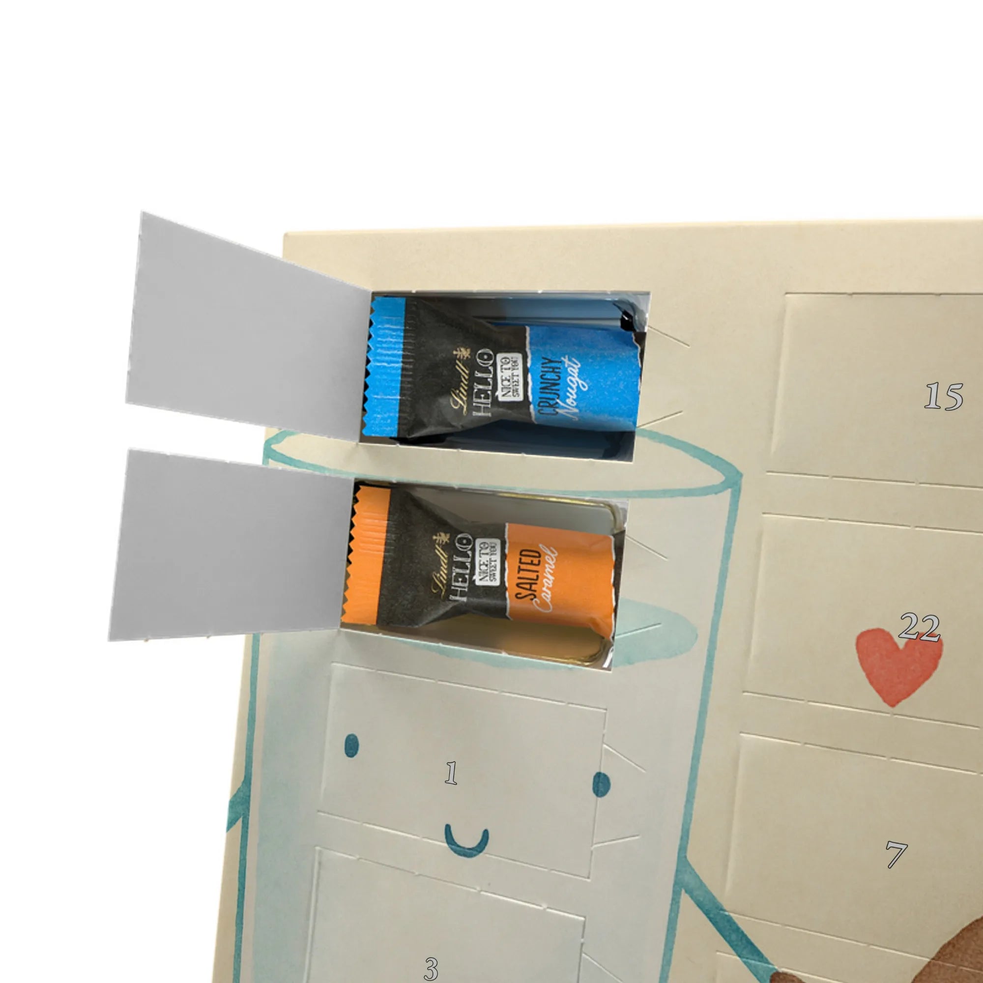 Mach die Adventszeit süßer: Entdecke jetzt unseren liebevoll bedruckten Adventskalender und genieße 24 Tage voller Lindt Hello Mini Sticks!