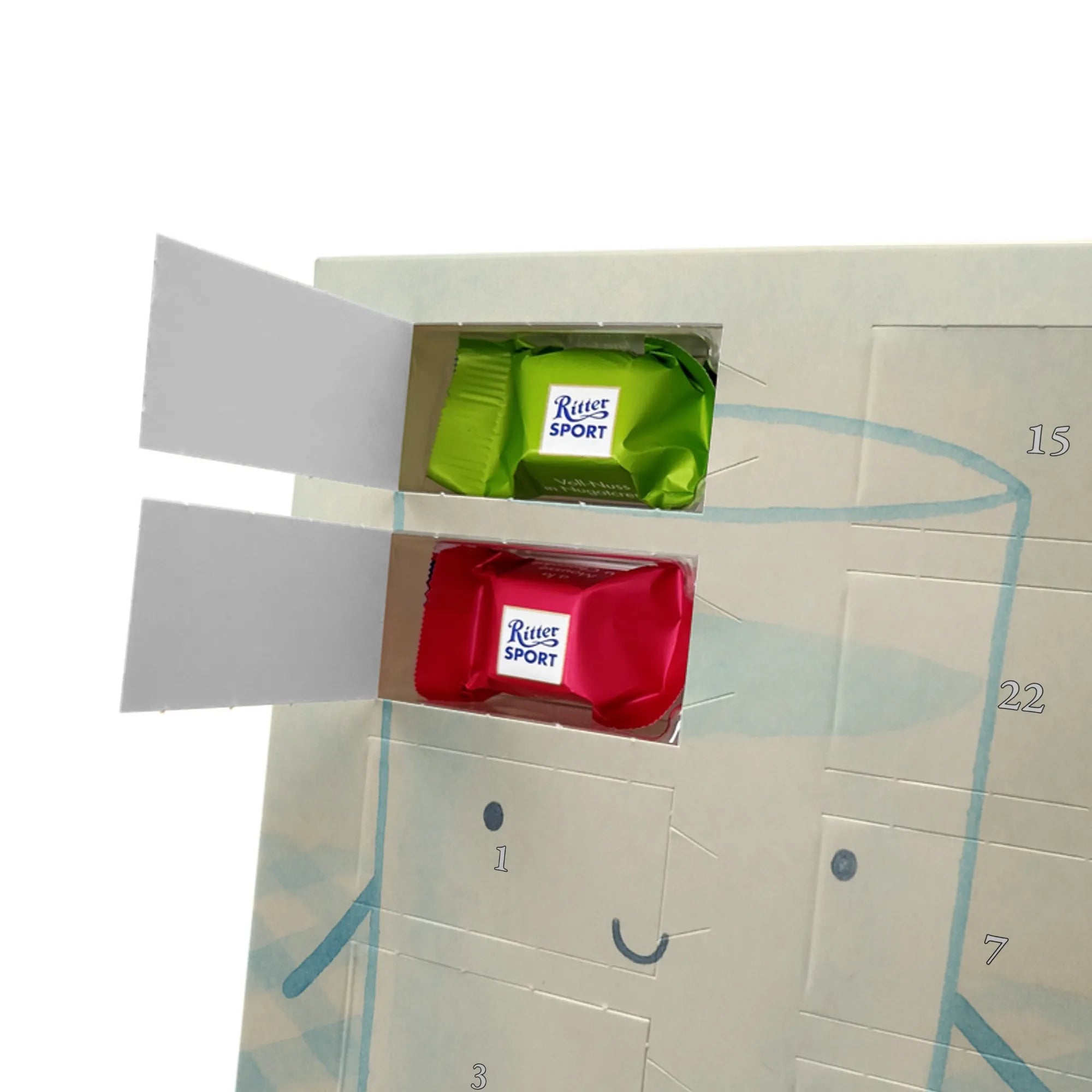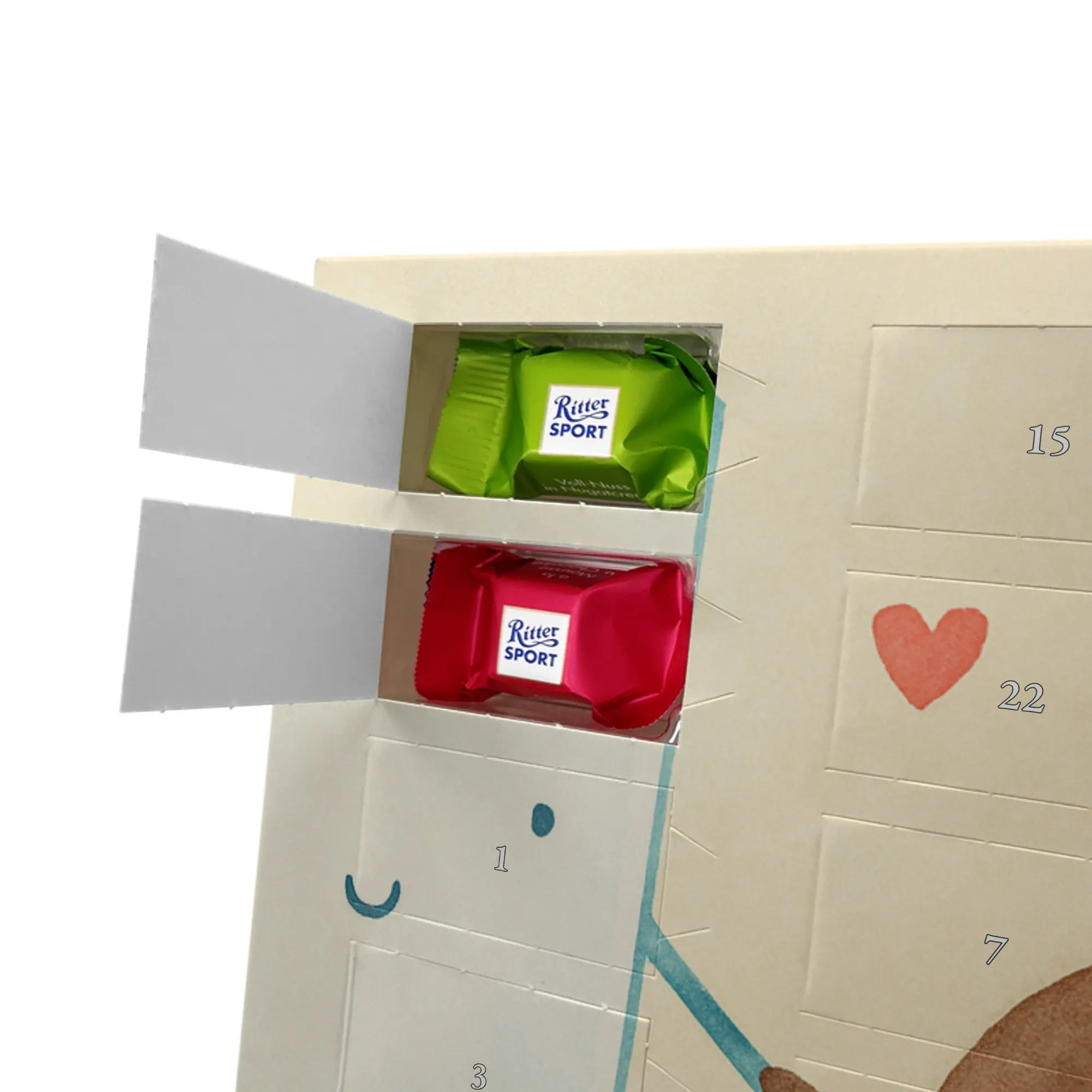 🐼 24 Türchen gefüllt mit Ritter Sport Schokowürfeln – perfekte Adventsüberraschungen.