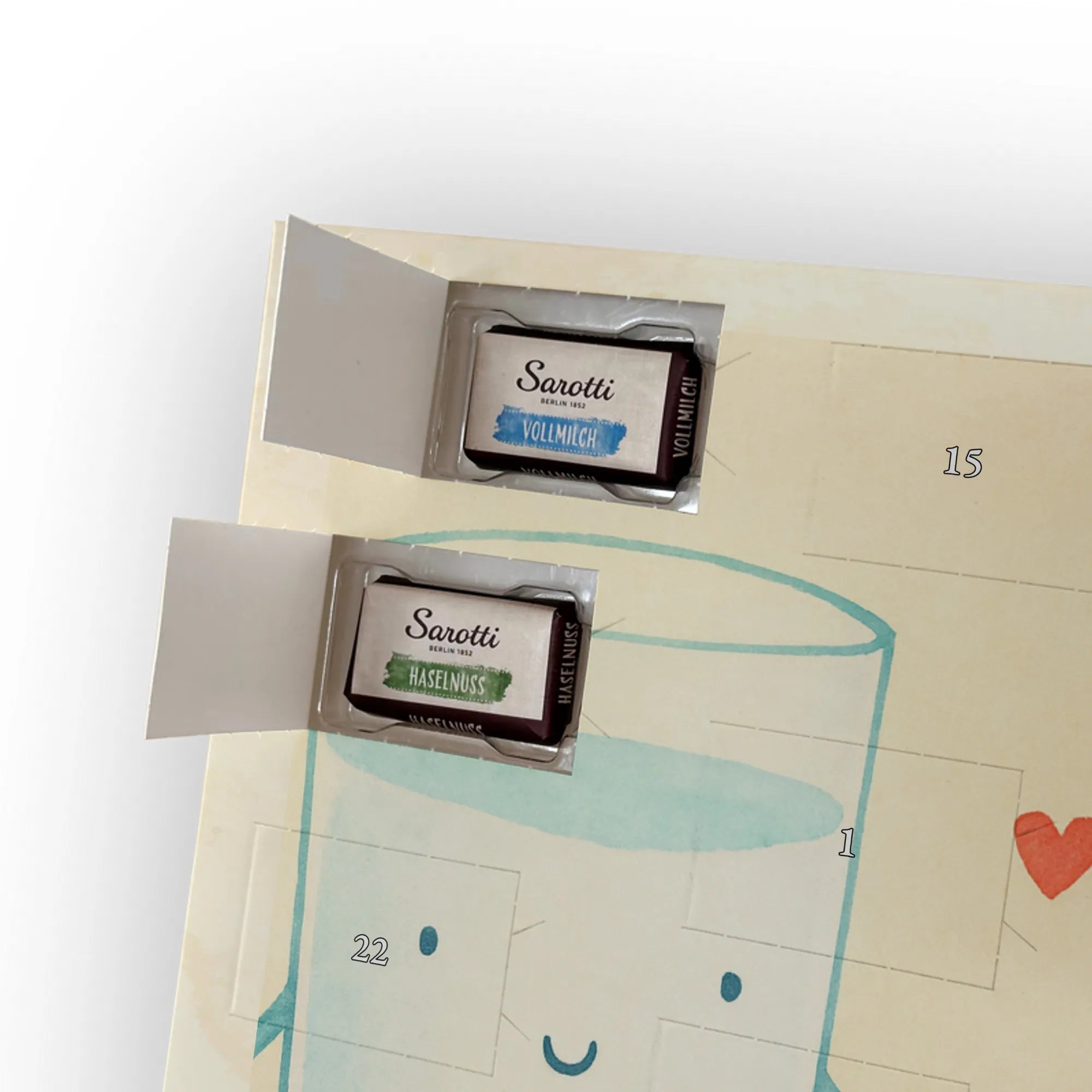 Schenk Vorfreude: Bestelle jetzt den Adventskalender Schokolade von Mr. & Mrs. Panda und genieße jeden Tag eine kleine Überraschung.