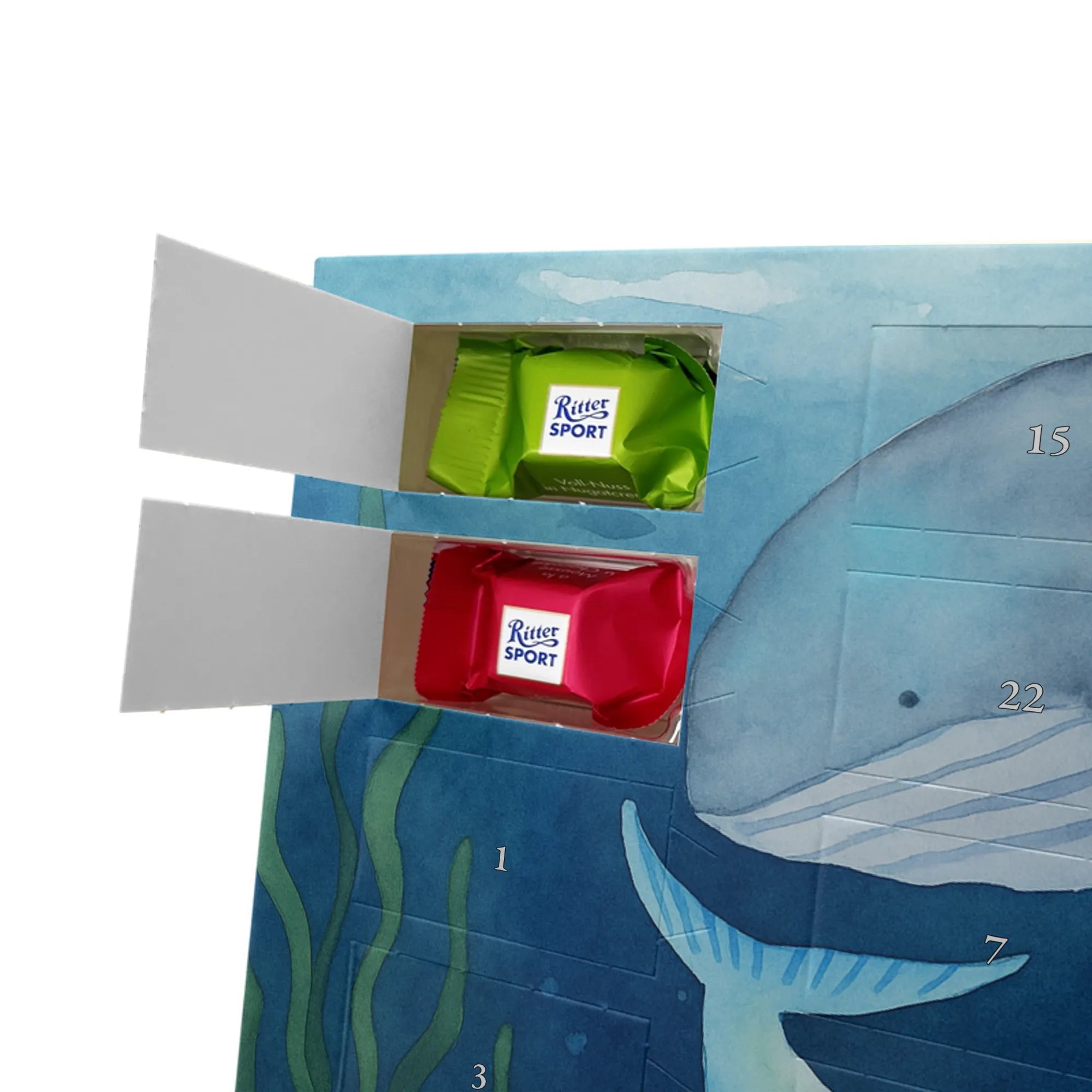 🐼 24 Türchen gefüllt mit Ritter Sport Schokowürfeln – perfekte Adventsüberraschungen.