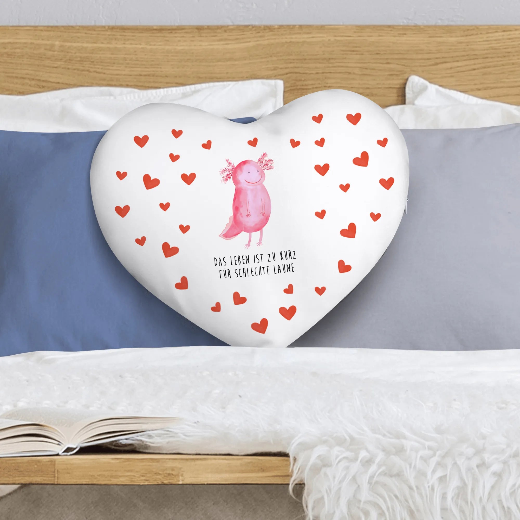 Das Herzkissen "Axolotl glücklich" von Mr. & Mrs. Panda ist der perfekte Begleiter für alle, die gute Laune und Freude in ihr Zuhause bringen möchten. Mit einem zauberhaften Design, das einen fröhlichen Axolotl zeigt, setzt dieses Kissen ein kreatives Statement und sorgt für ein Lächeln auf deinem Gesicht.
