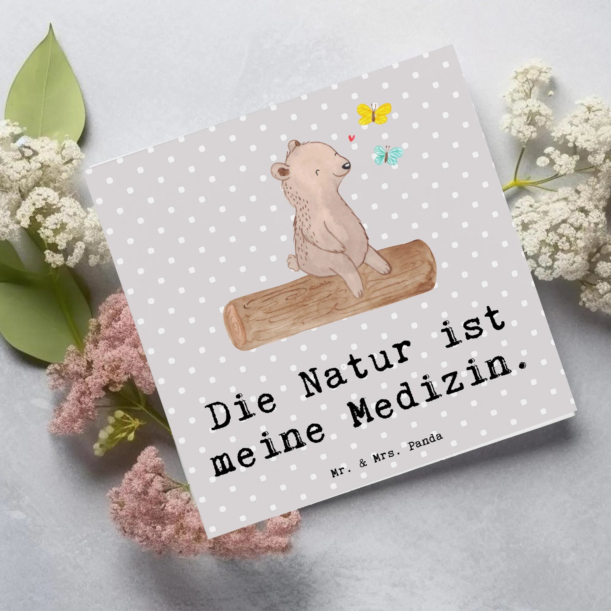 Die Deluxe Karte mit dem bezaubernden Bär-Motiv "Die Natur ist meine Medizin" von Mr. & Mrs. Panda ist der perfekte Gruß für Naturliebhaber und Outdoor-Enthusiasten. Diese hochwertige quadratische Karte, die in einer edlen 140 mm x 140 mm Größe daherkommt, ist nicht nur ein echter Hingucker, sondern auch eine liebevolle Möglichkeit, Grüße oder Glückwünsche zu übermitteln.