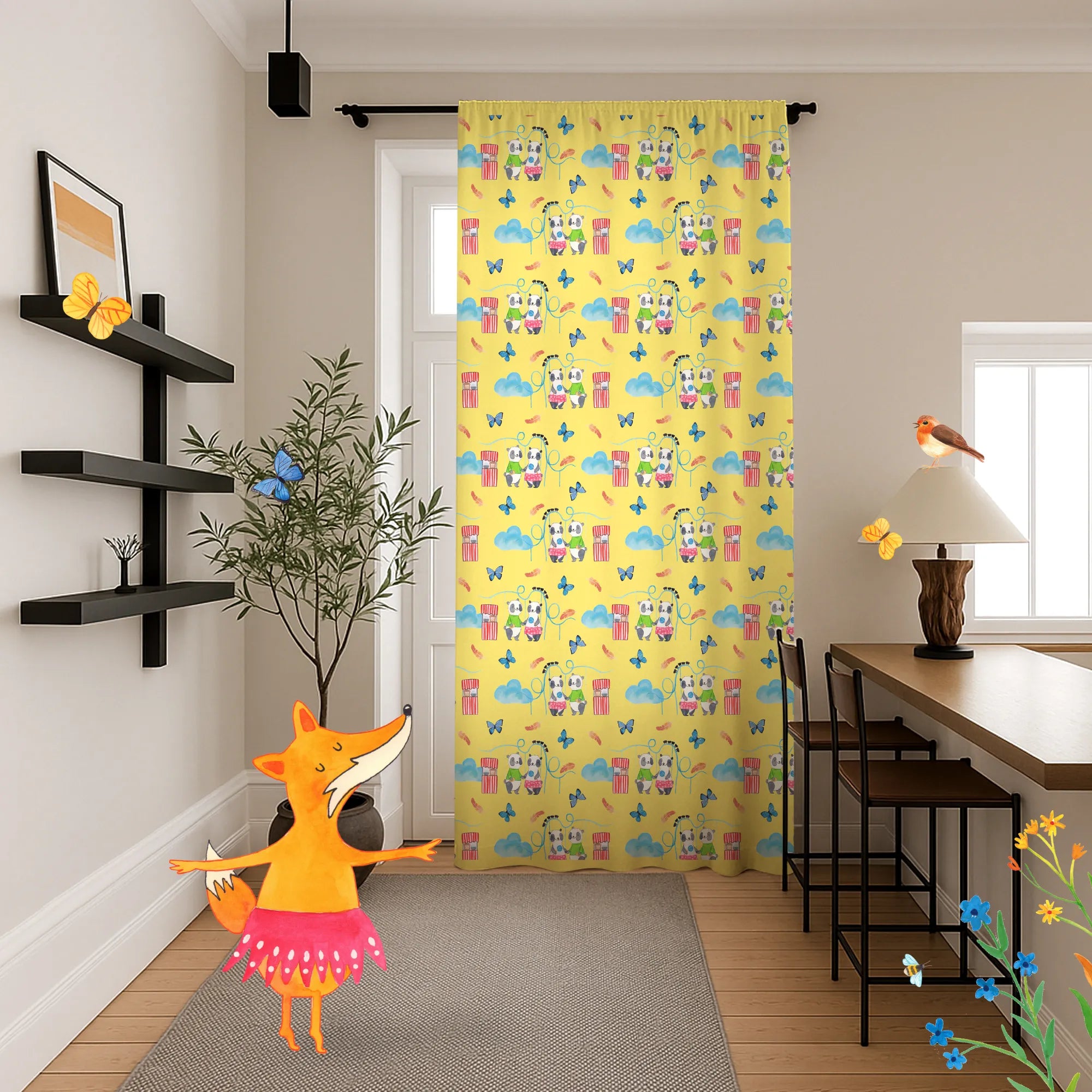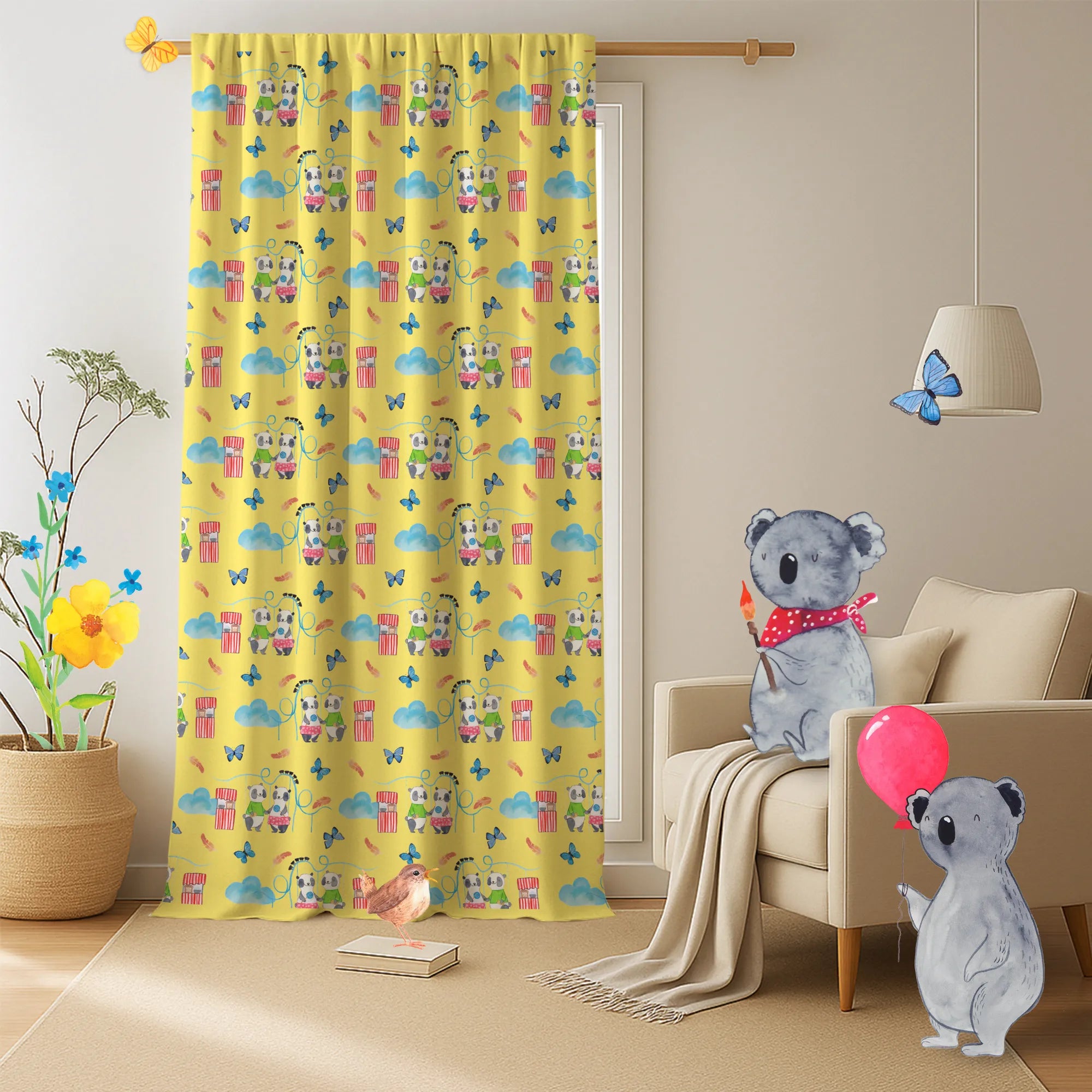 Flächenvorhang Pandas Freizeitpark besuchen Muster