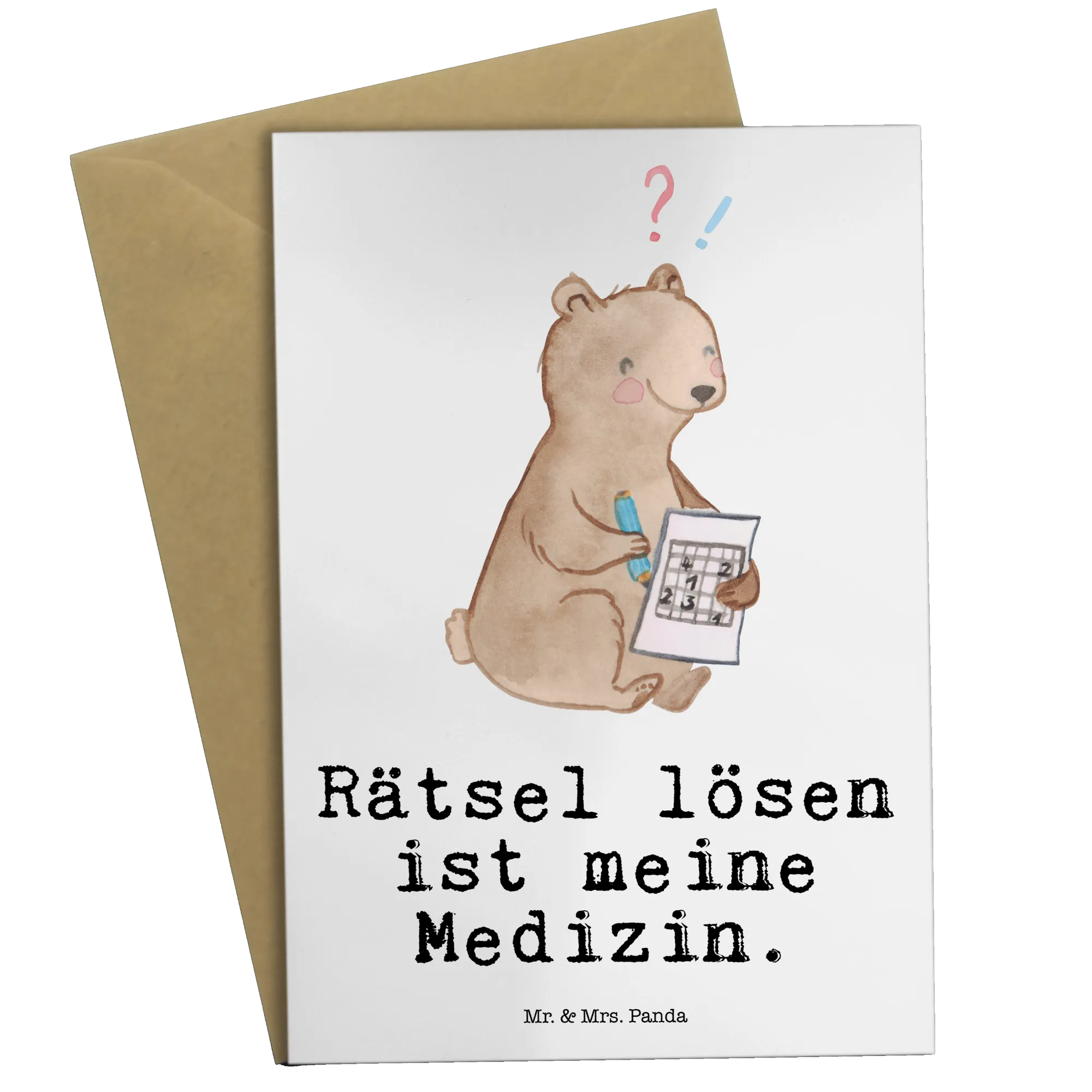 Die wunderschöne Grußkarte "Bär Rätsel lösen Medizin" von Mr. & Mrs. Panda ist das perfekte Geschenk für alle, die knifflige Rätsel lieben und gleichzeitig eine liebevolle Botschaft übermitteln möchten. Diese einzigartige Klappkarte wird in der Kollektion Hobby & Sport angeboten und begeistert durch ihr süßes, handgezeichnetes Motiv eines fröhlichen Bären, der mit einem Kreuzworträtsel auf dem Boden sitzt und sich wohl in der faszinierenden Welt des Rätselratens verloren hat.