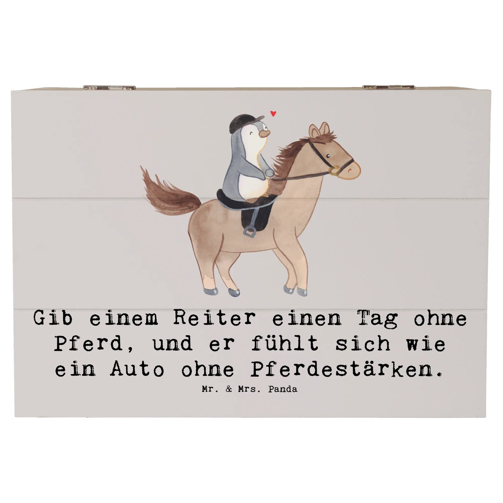 Die wunderschöne Holzkiste von Mr. & Mrs. Panda ist das perfekte Geschenk für alle Reitsportbegeisterten! Mit dem liebevollen Spruch: 'Gib einem Reiter einen Tag ohne Pferd, und er fühlt sich wie ein Auto ohne Pferdestärken.' wird diese Kiste zu einem echten Schatz für Erinnerungen rund um das Thema Pferde und Reitsport.