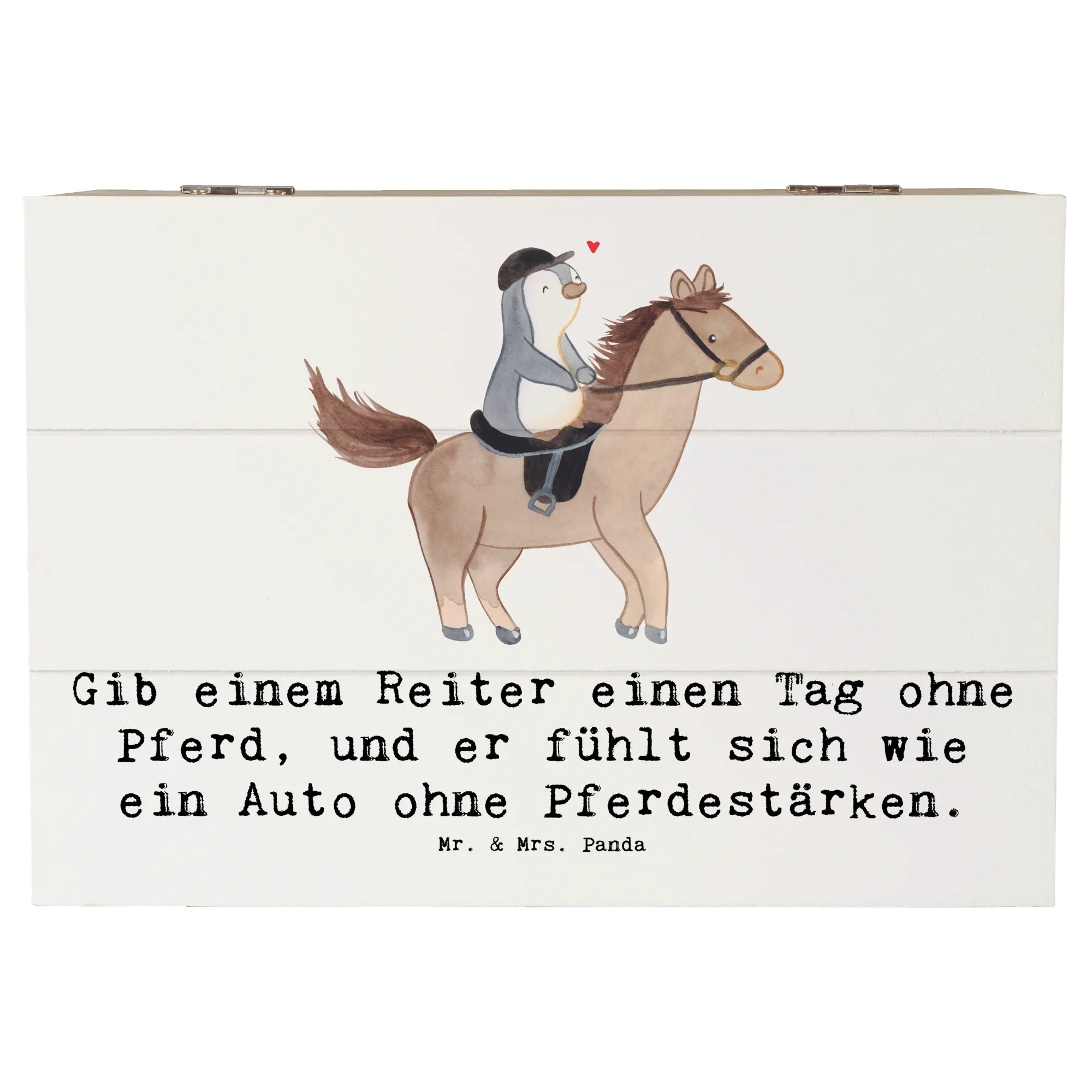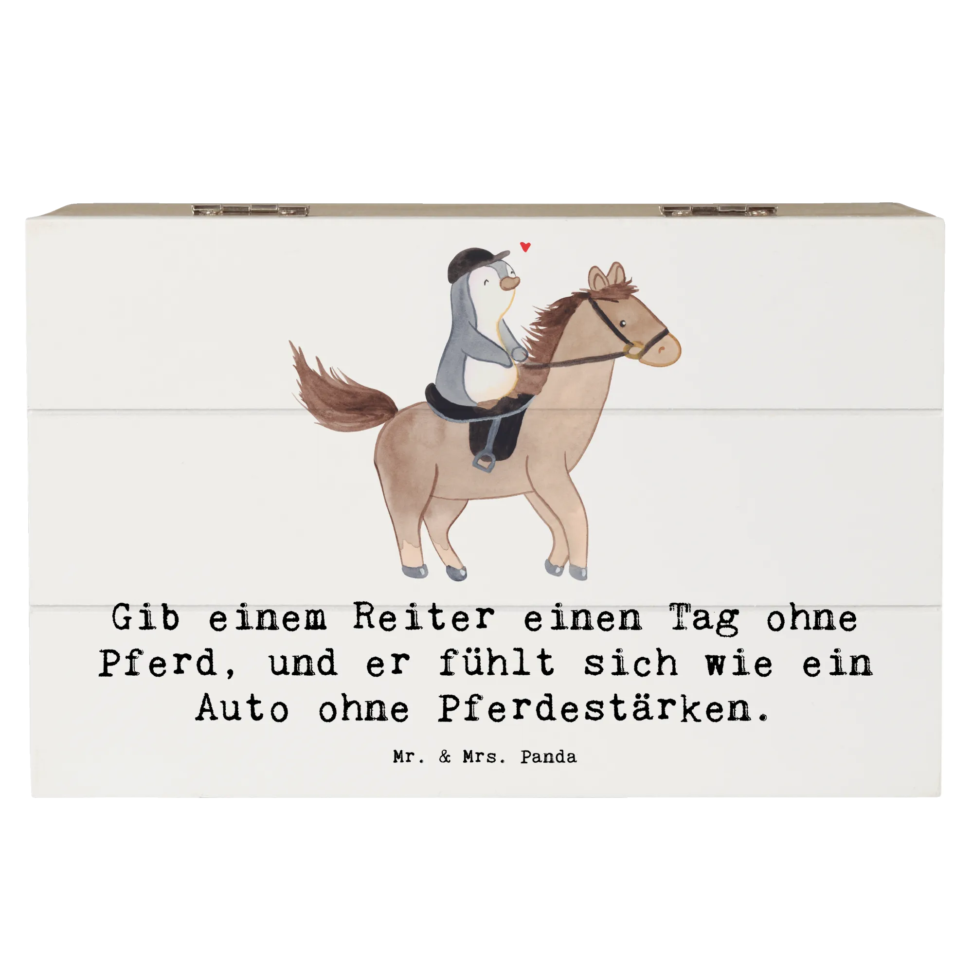 Die wunderschöne Holzkiste von Mr. & Mrs. Panda ist das perfekte Geschenk für alle Reitsportbegeisterten. Mit dem liebevoll gestalteten Motiv und dem passenden Spruch "Gib einem Reiter einen Tag ohne Pferd, und er fühlt sich wie ein Auto ohne Pferdestärken." ist diese Kiste nicht nur ein echter Hingucker, sondern auch ein ausgesprochen funktionales Geschenk.