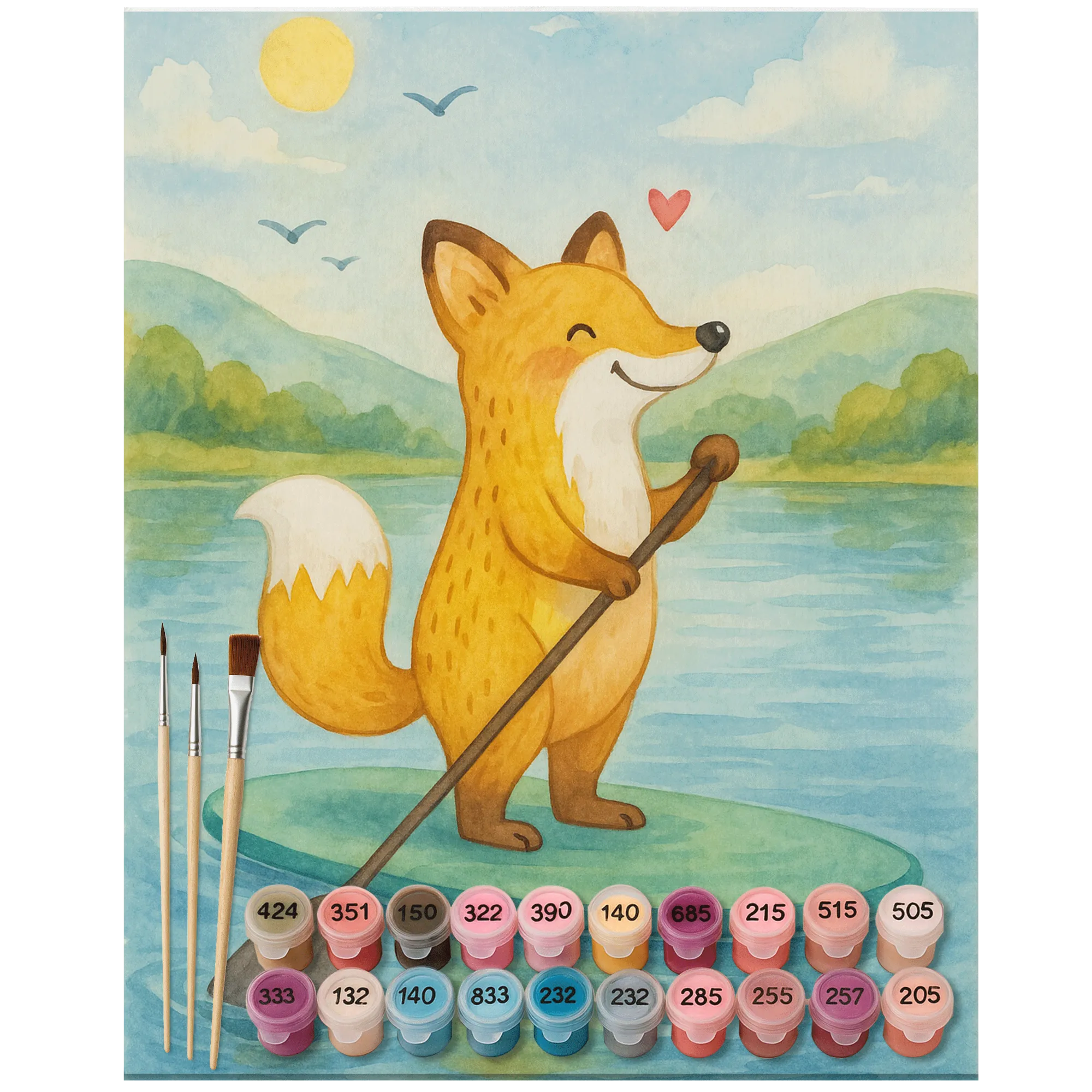 Malen nach Zahlen Fuchs Stand Up Paddling Design - Ohne Rahmen - 24 Farben (Standard)