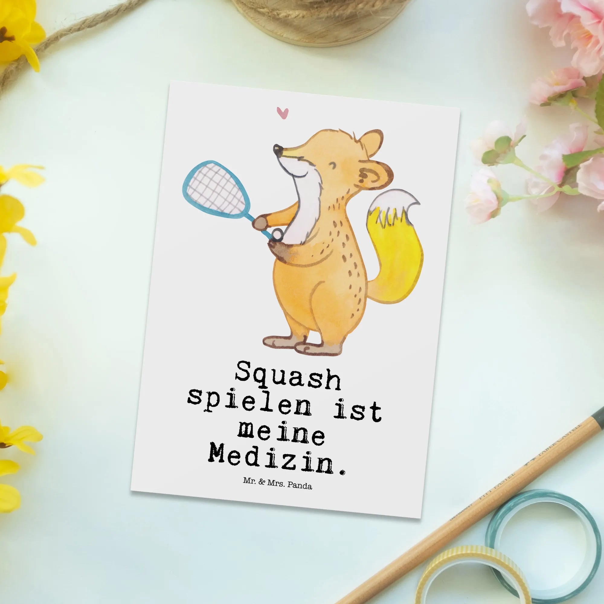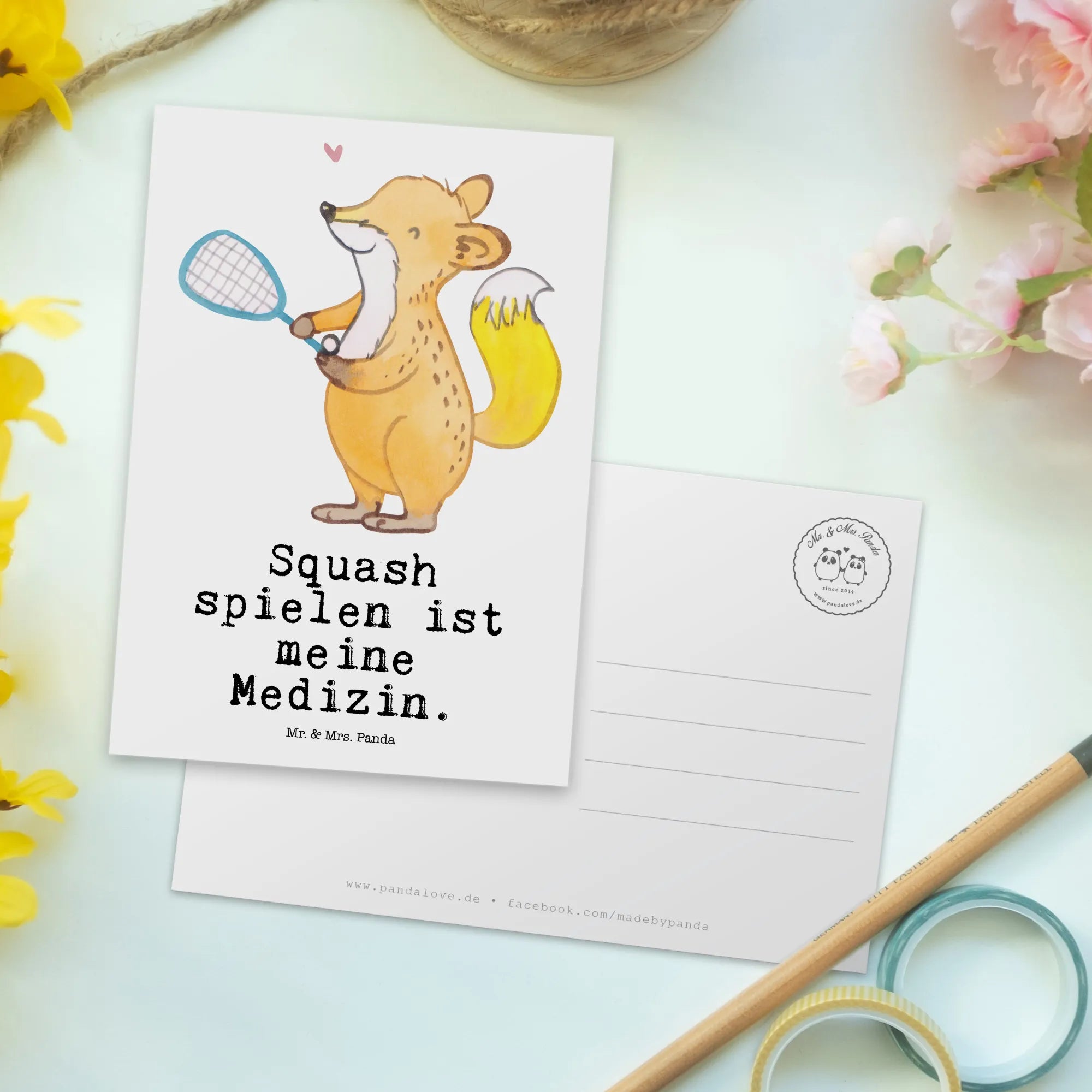 Die perfekte Postkarte für alle Squash-Liebhaber – unsere Fuchs Squash spielen Medizin Karte aus der Hobby & Sport Kollektion von Mr. & Mrs. Panda! Diese einzigartige Postkarte ist nicht nur ein liebevolles Geschenk für Sportler und Hobby-Fanatiker, sondern auch eine wunderbare Möglichkeit, um Freude und Dankbarkeit auszudrücken.