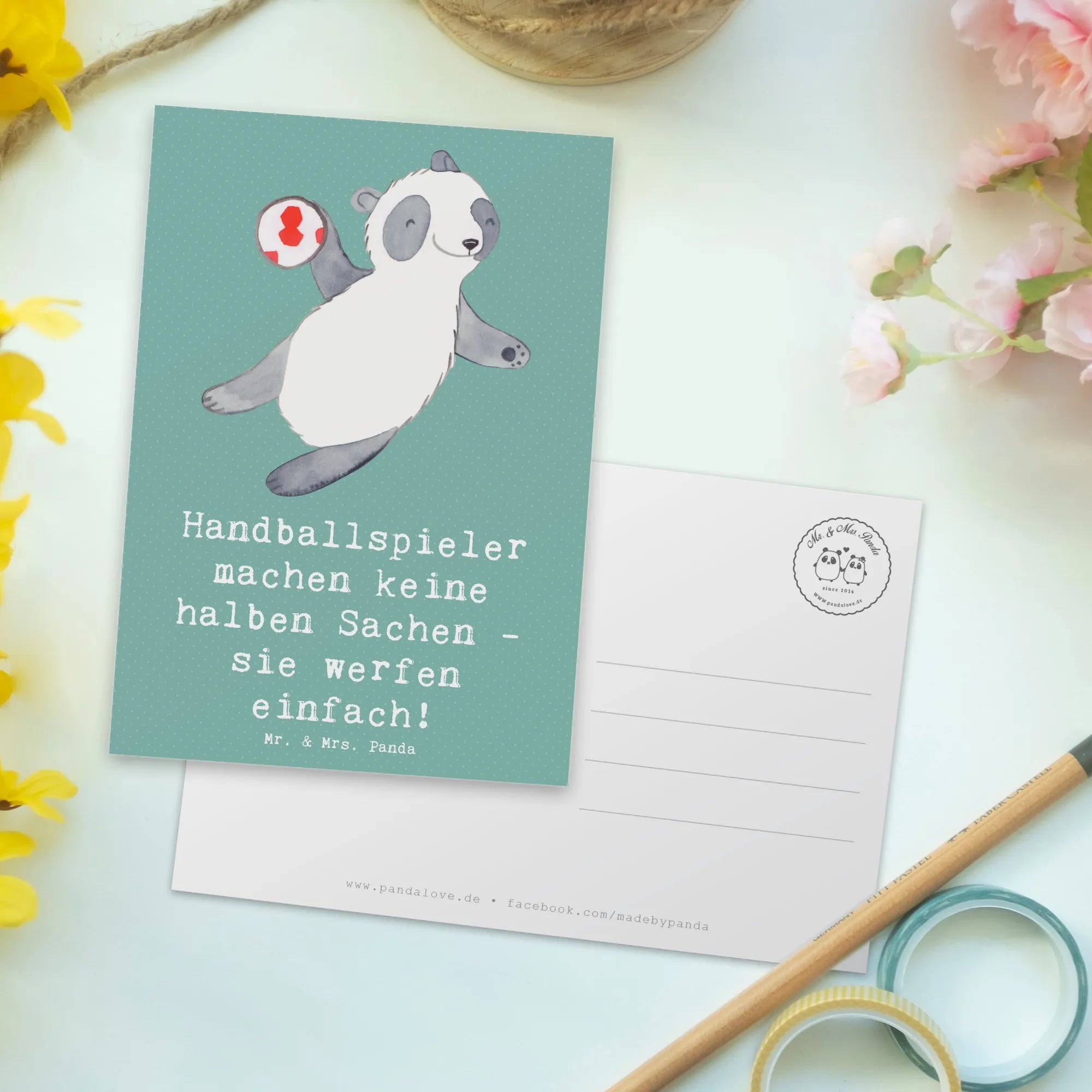Postkarte Handball von Mr. & Mrs. Panda – perfekt für alle Handballfans!