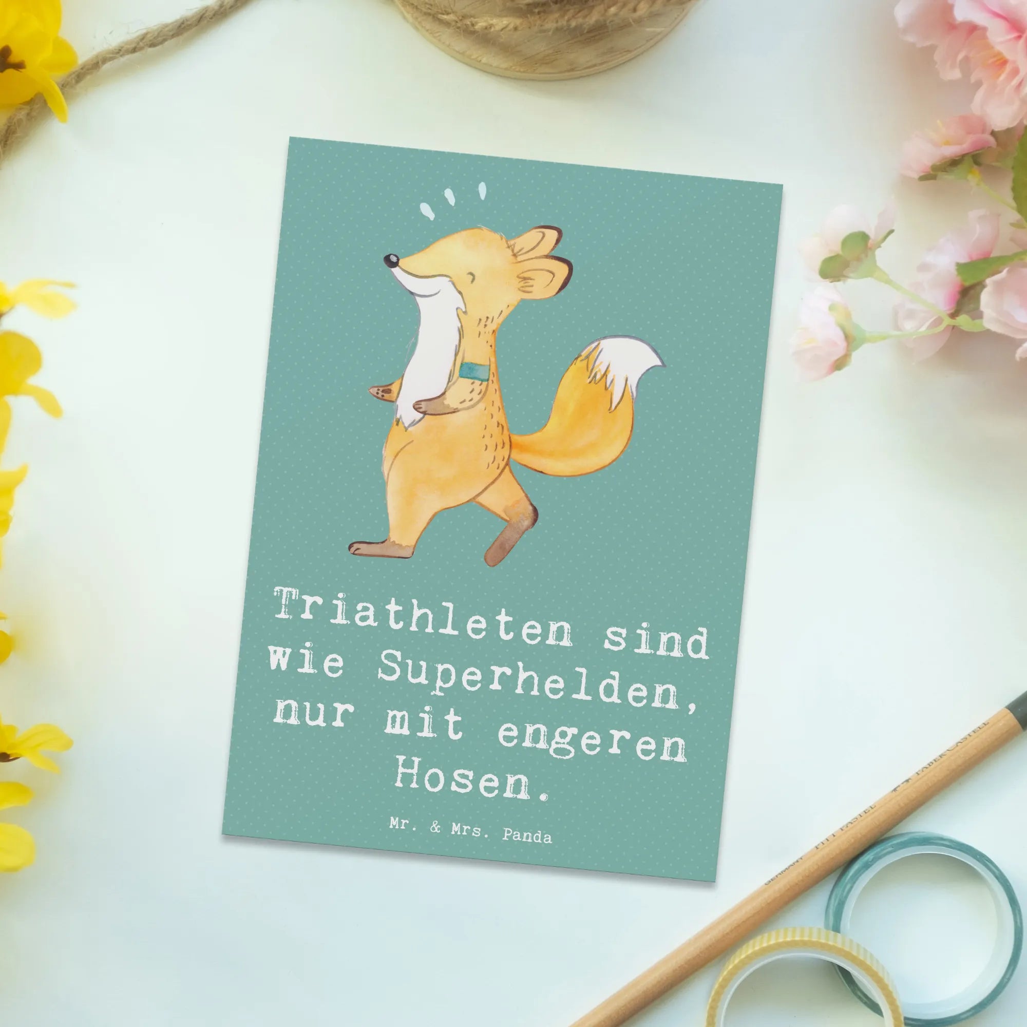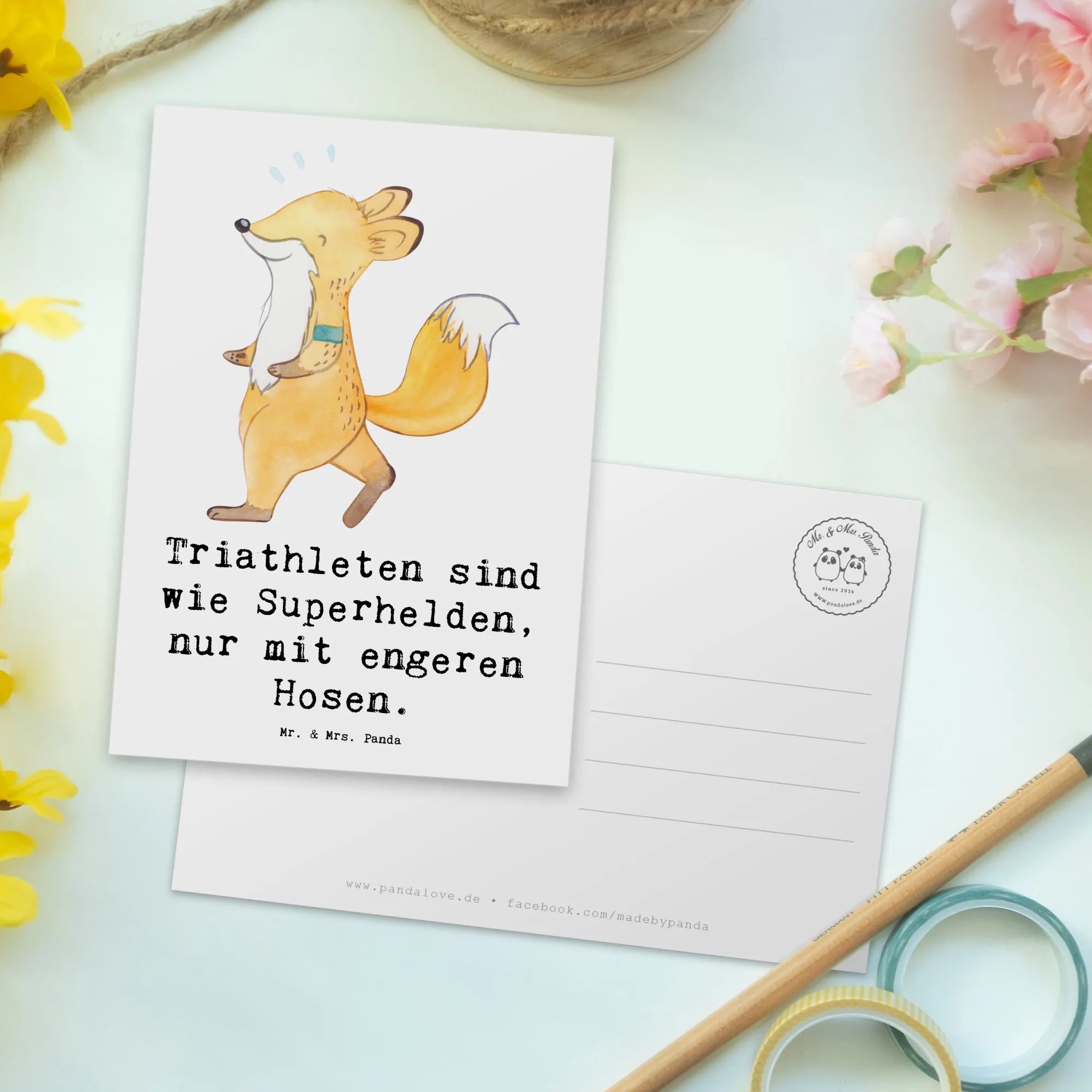 Die einzigartige Postkarte „Triathleten sind wie Superhelden, nur mit engeren Hosen“ von Mr. & Mrs. Panda ist das perfekte Geschenk für alle Sportbegeisterten! Mit ihrem humorvollen und liebevoll gestalteten Motiv spricht die Karte nicht nur Triathleten an, sondern begeistert auch Freunde und Familie, die den Sport lieben. Egal, ob die Karte zum Geburtstag, als Einladung zu einem Sportevent oder einfach nur zur Motivation verschickt wird – sie bringt Freude und ein Lächeln ins Gesicht!