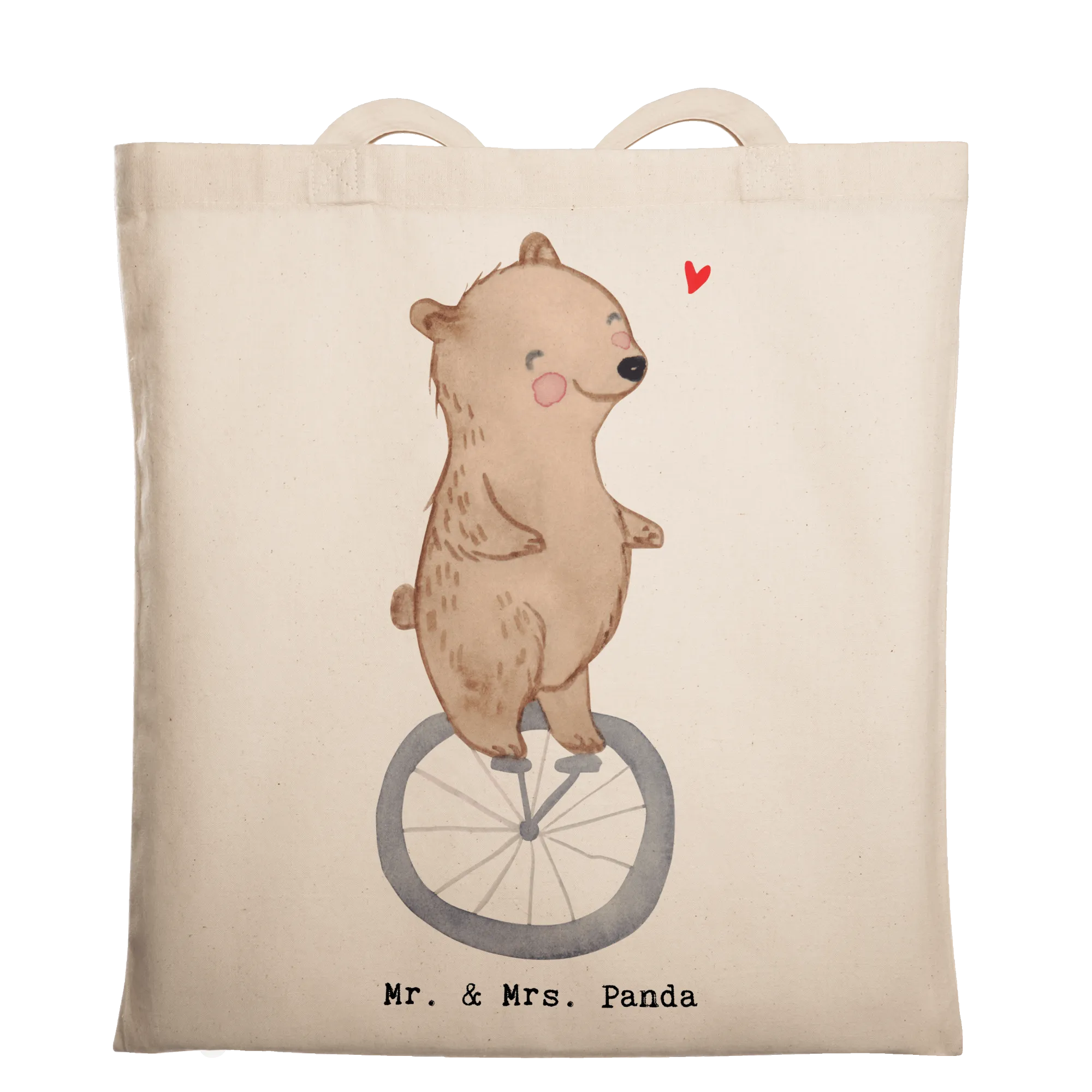 Jutebeutel Bär Einrad fahren - mit Spruch - Transparent