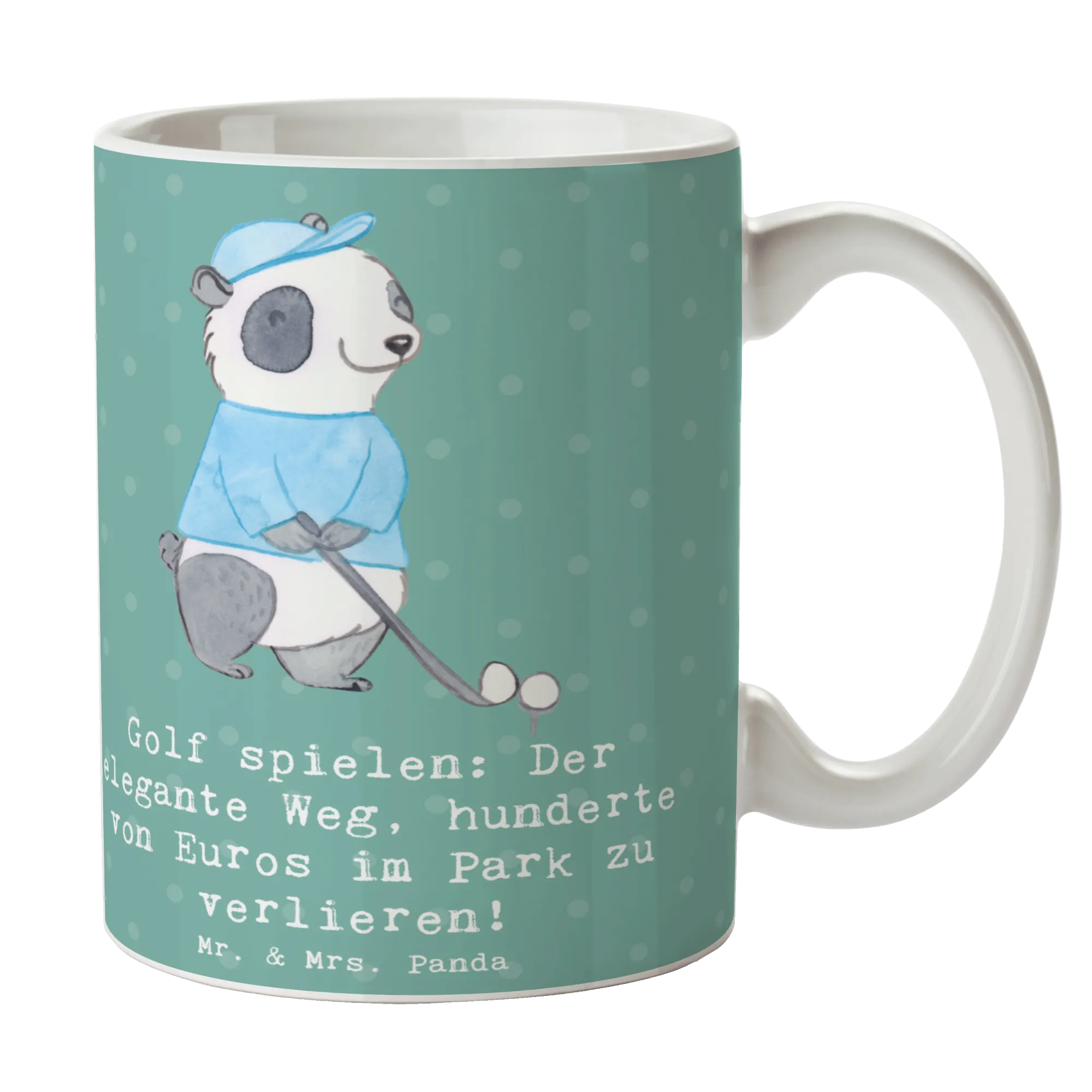 Suchst du ein Geschenk für Golfer mit Humor? Unsere Mr. & Mrs. Panda Tasse aus der Sportarten-Kollektion ist die ideale Wahl! Mit dem witzigen Spruch „Golf spielen: Der elegante Weg, hunderte von Euros im Park zu verlieren!“ bringt sie jeden Golf-Fan zum Schmunzeln. Das liebevoll von Mrs. Panda gezeichnete Motiv in Aquarelloptik macht die Tasse zum stilvollen Hingucker, egal ob in der Küche oder im Büro. ☕️