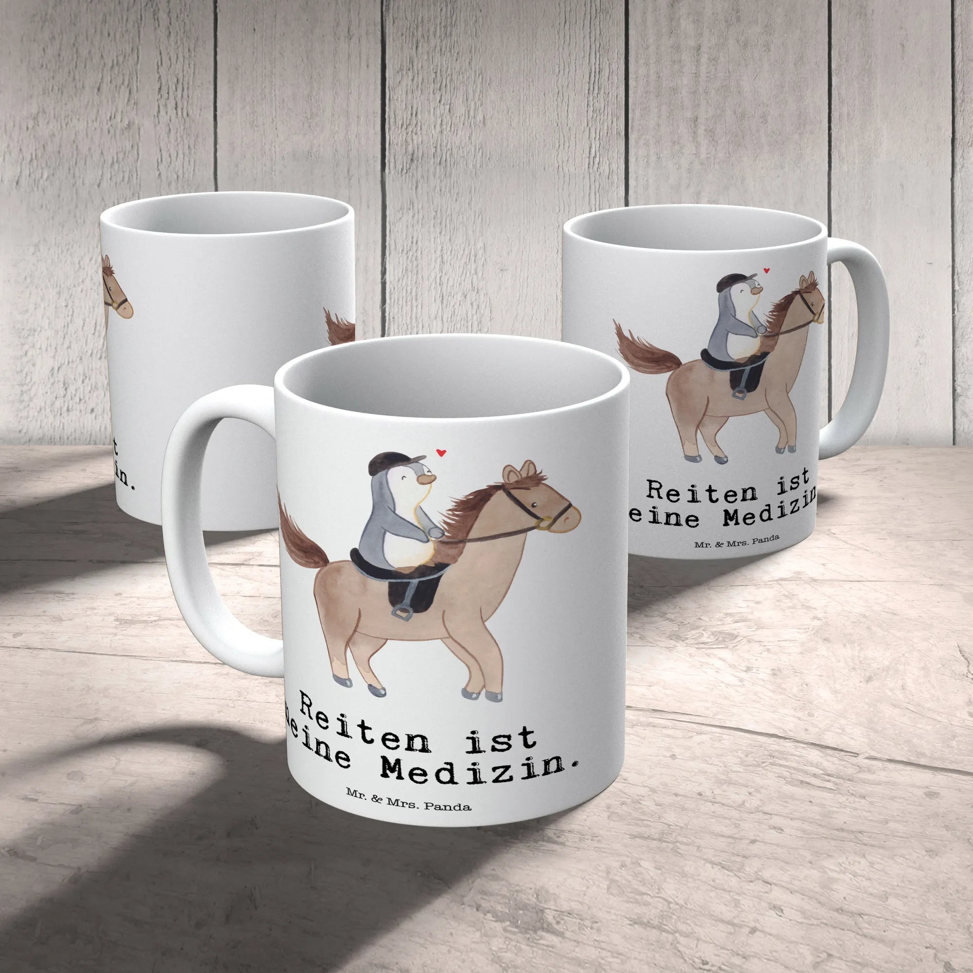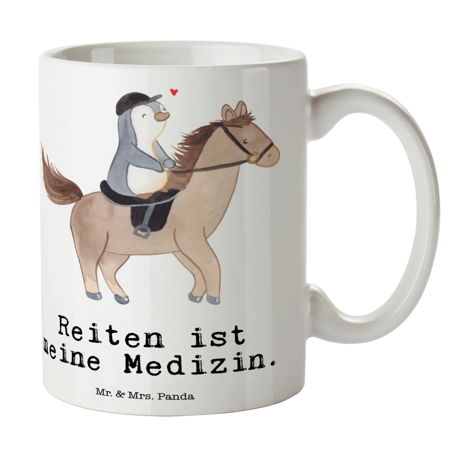 Du suchst nach einem perfekten Geschenk für jemanden, der die Freude am Reiten entdeckt hat? Unsere wunderschöne Tasse mit dem Motiv "Pferd Reiten Medizin" aus der Hobby & Sport Kollektion von Mr. & Mrs. Panda ist mehr als nur eine Tasse – sie ist eine wahre Umarmung in Form eines Geschenks! Die Tasse ist nicht nur funktional, sondern auch ein echter Hingucker mit ihrem liebevoll gestalteten Design, auf dem ein niedlicher Pinguin begeistert auf einem süßen Pferd reitet. Mit dem Slogan "Reiten ist meine Medizin" bringt die Tasse die Leidenschaft für den Reitsport perfekt zum Ausdruck.