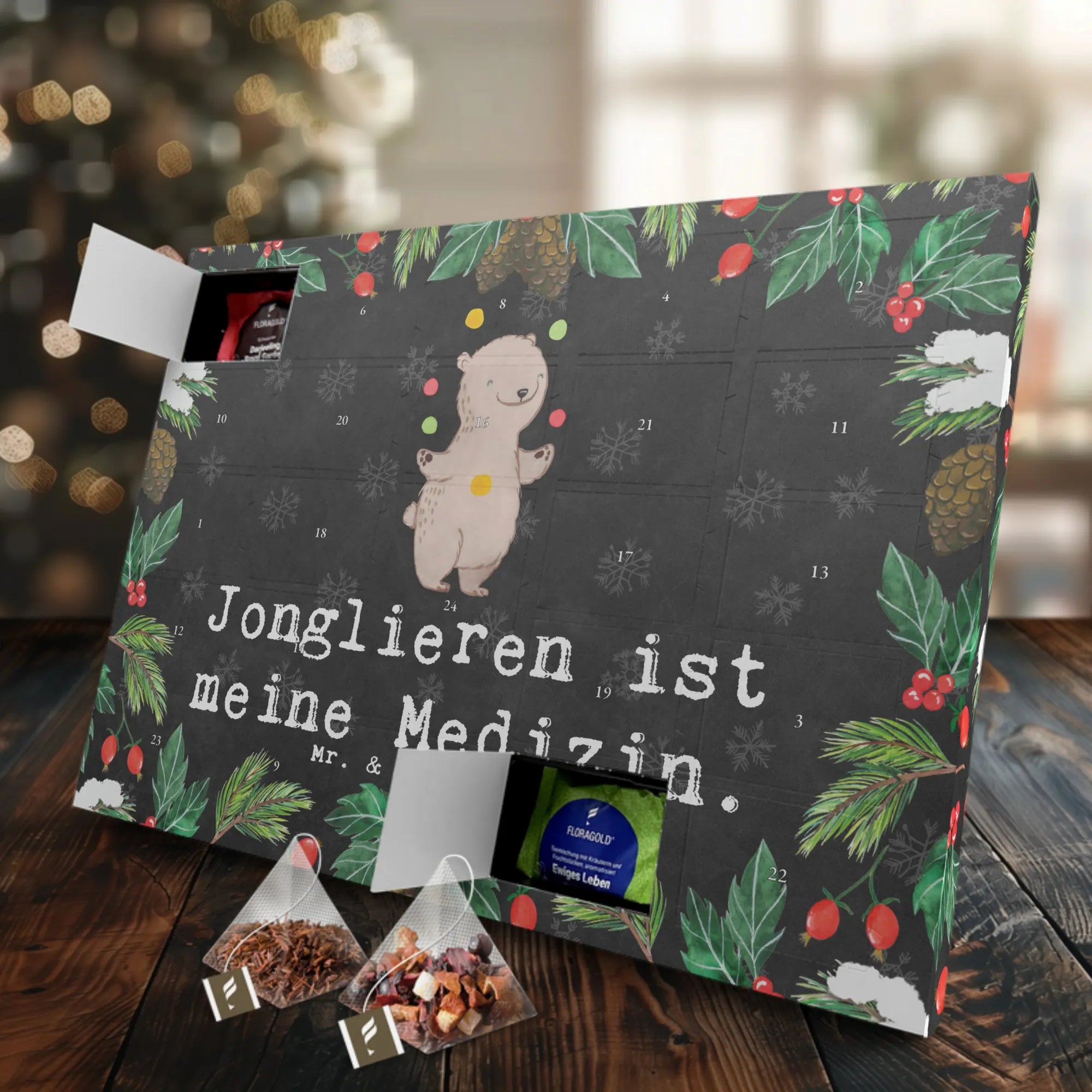 Der Tee Adventskalender mit dem süßen Bären, der jongliert, ist das perfekte Geschenk für alle Sportbegeisterten und Teeliebhaber. Mit dem Slogan "Jonglieren ist meine Medizin." bringt dieser Kalender ein Lächeln auf jedes Gesicht und begeistert Jung und Alt.