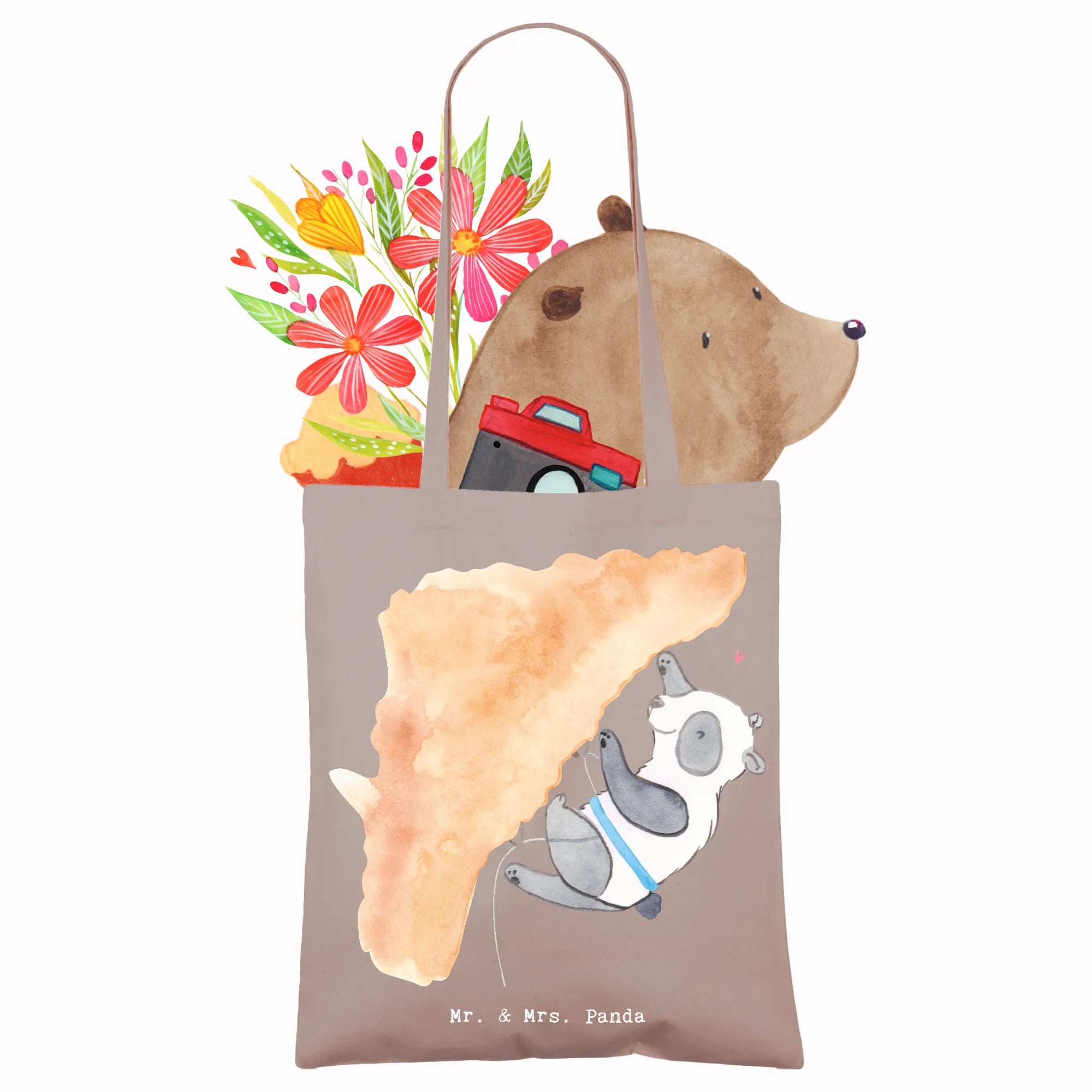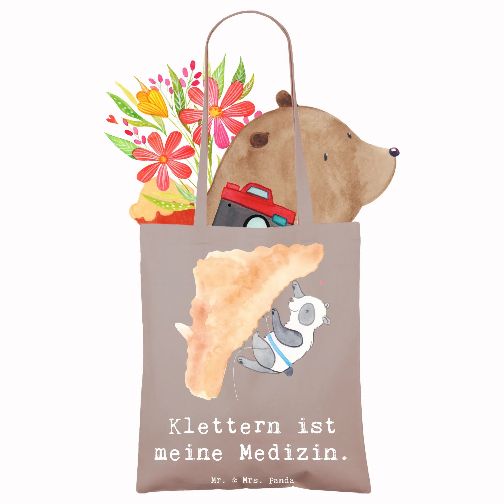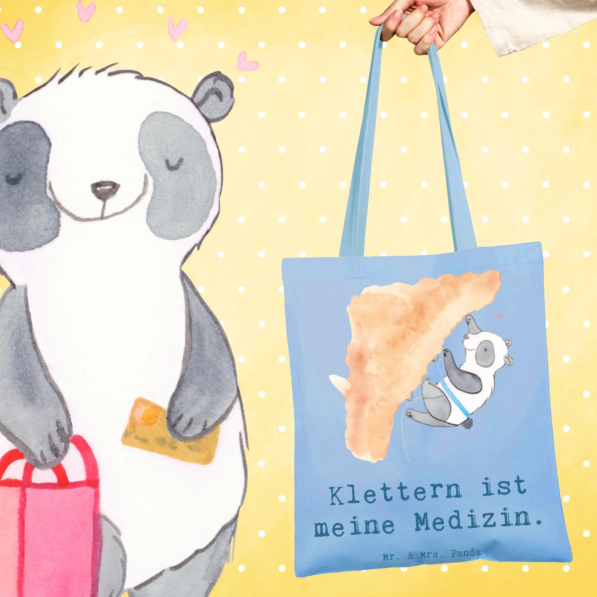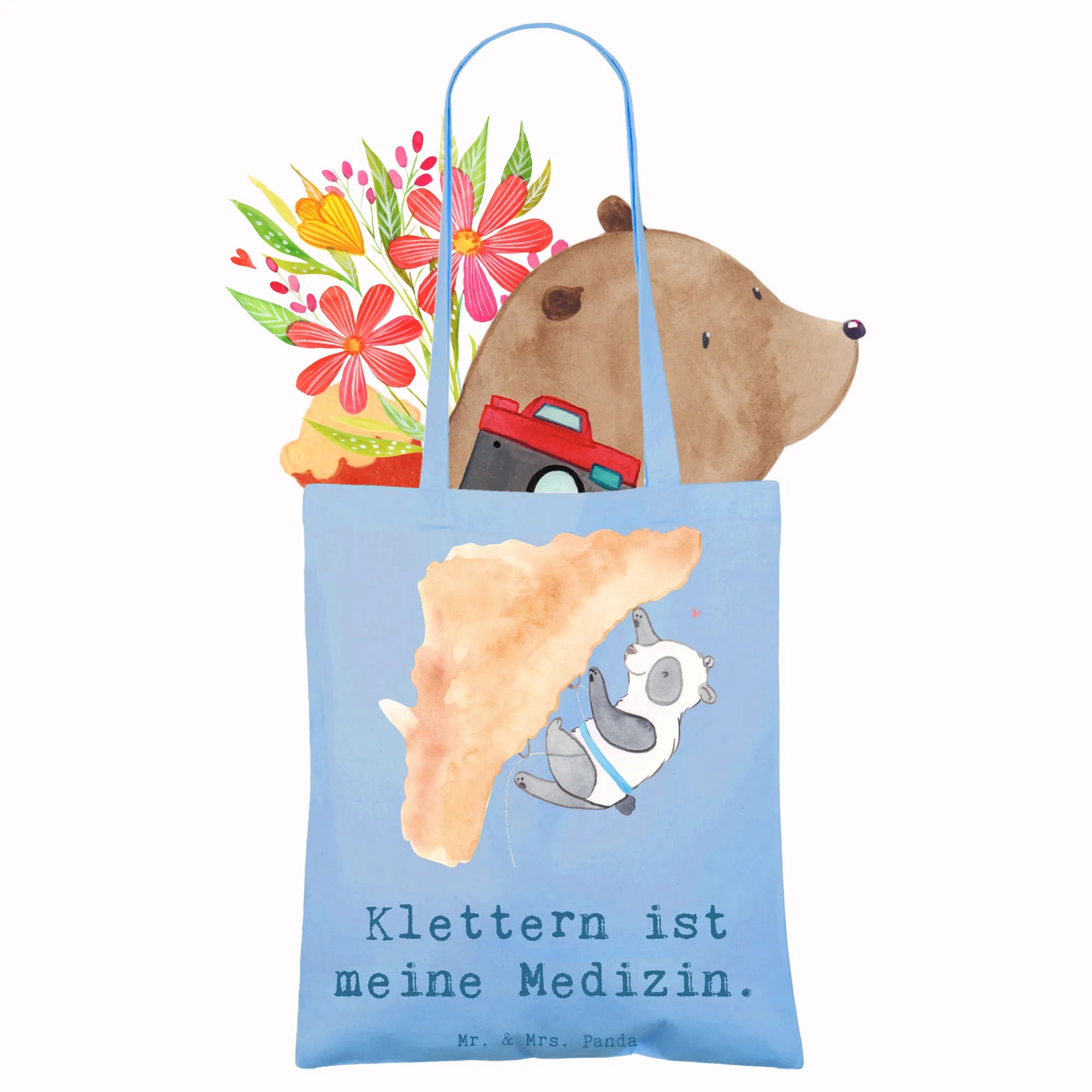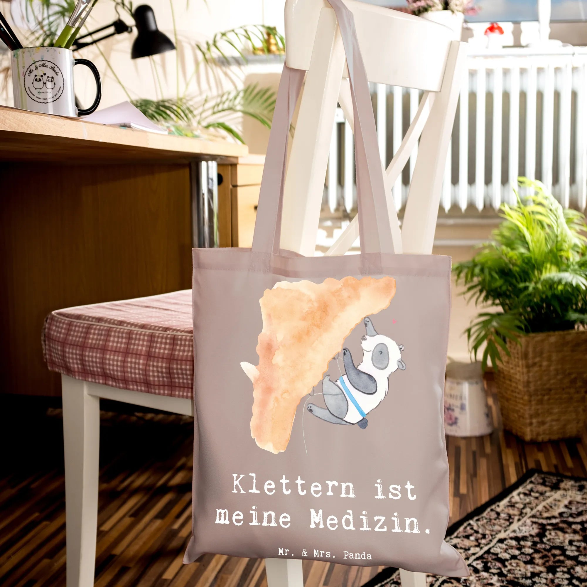 Suchst du das perfekte Geschenk für einen Sportbegeisterten oder Kletterliebhaber? Dann ist die Tragetasche von Mr. & Mrs. Panda mit dem süßen Motiv "Panda Klettern Medizin" genau das Richtige! Ob im Klettergarten, in der Kletterhalle oder beim Bouldern – diese Tasche begleitet dich und trägt alles, was du benötigst! Sie ist nicht nur praktisch, sondern hat auch eine bezaubernde Message: "Klettern ist meine Medizin." Ideal für Menschen, die ihre Leidenschaft für den Klettersport ausleben und zugleich stilvoll unterwegs sein möchten.
