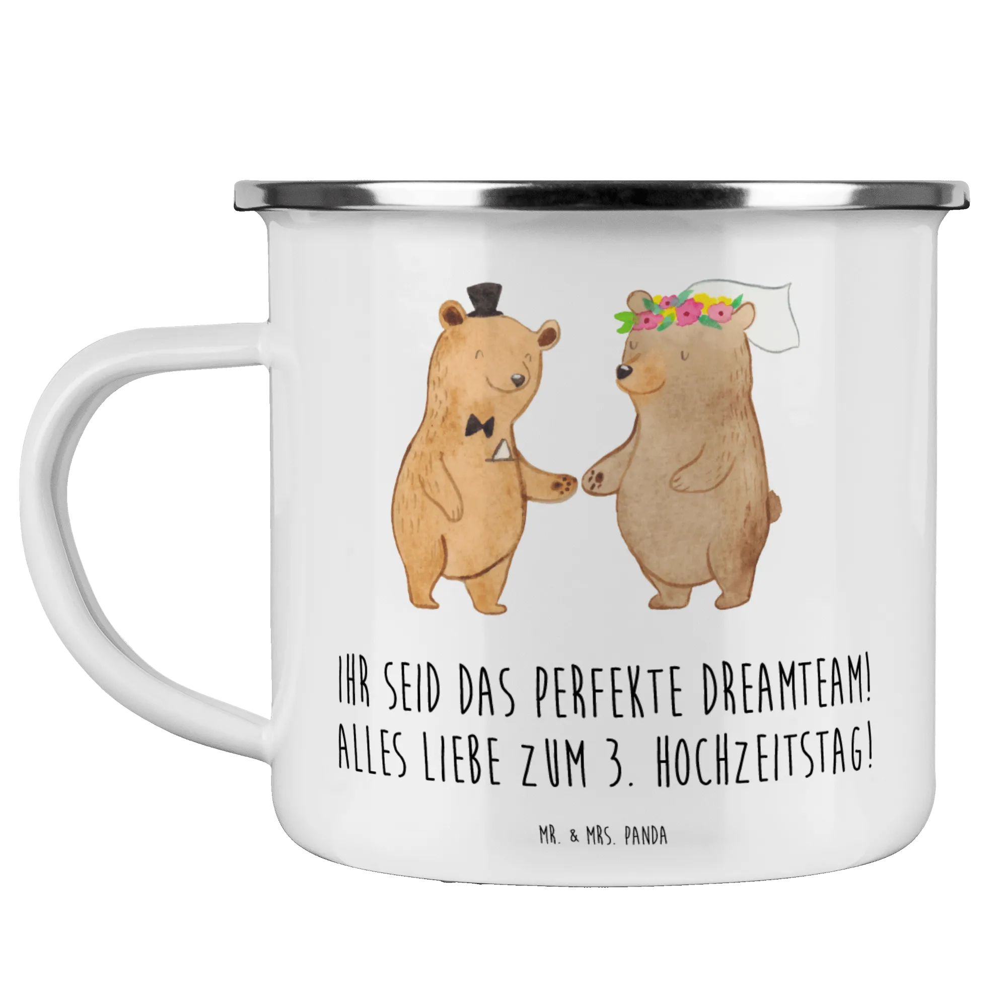 Die wunderschöne Camping Emaille Tasse von Mr. & Mrs. Panda ist das perfekte Geschenk für Paare, die ihren 3. Hochzeitstag feiern – auch bekannt als die Lederhochzeit! Mit dem herzlichen Spruch 'Ihr seid das perfekte Dreamteam! Alles Liebe zum 3. Hochzeitstag!' wird ein tolles und bleibendes Andenken an diesen besonderen Tag geschaffen.
